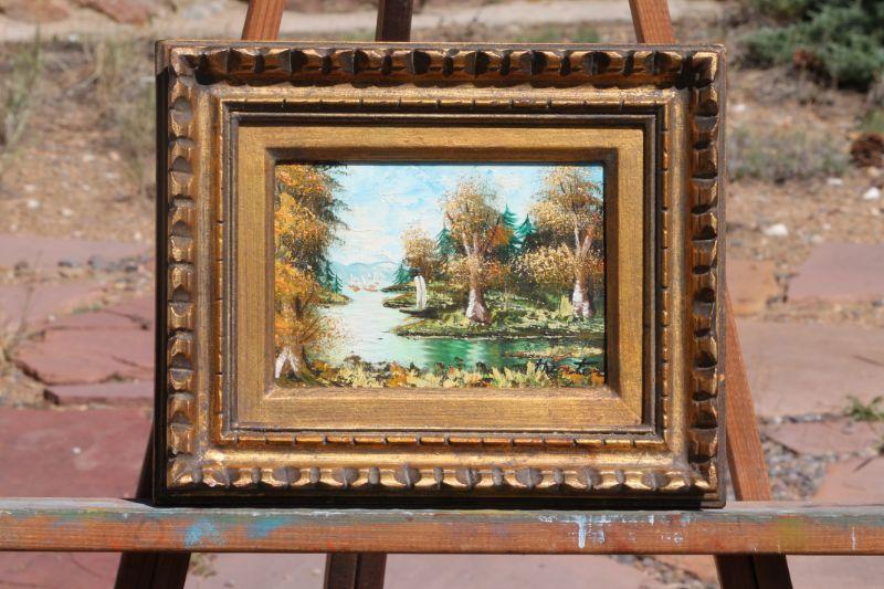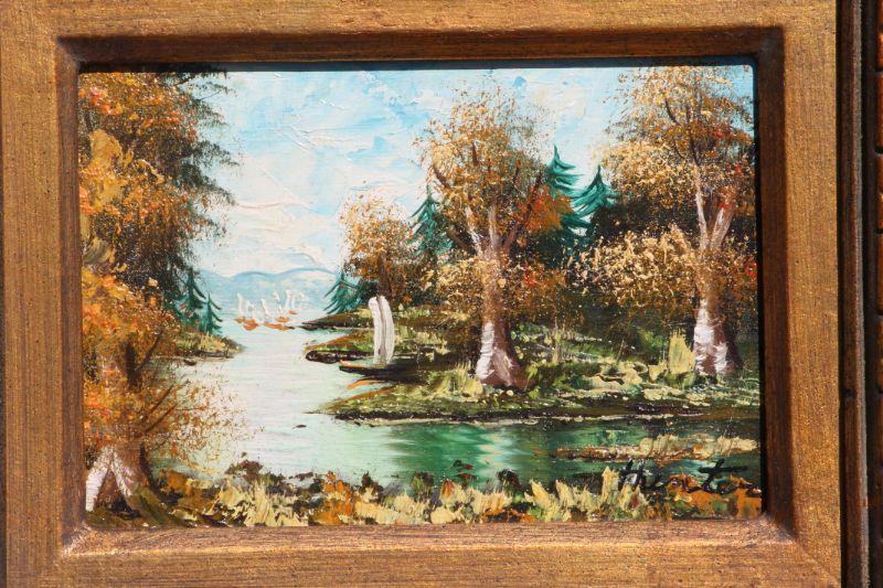 Lot 2-123: Vintage SIGNED Lake Landscape Oil Painting by HUNTER {10.5" x 8.5"}