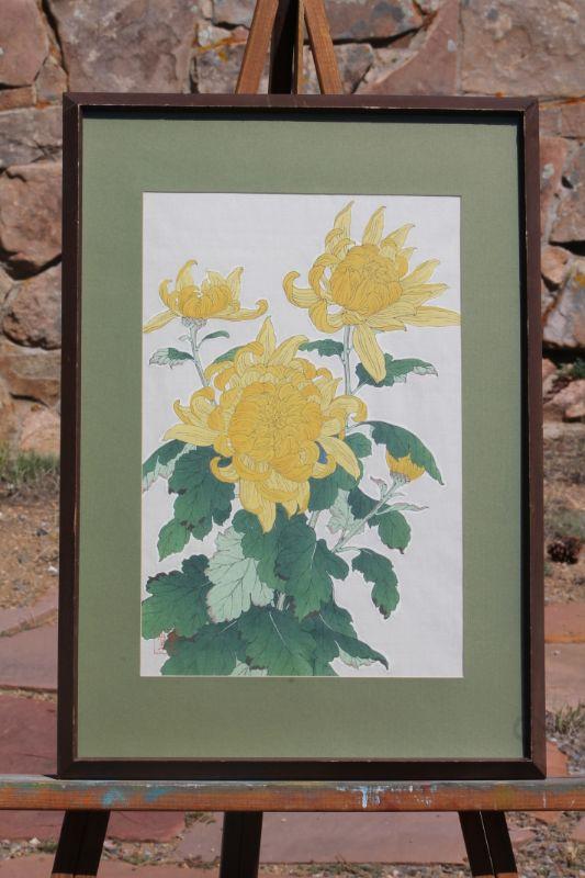Lot 2-128: Vintage Asian Woodblock Print Yellow Flowers {20" x 14"}