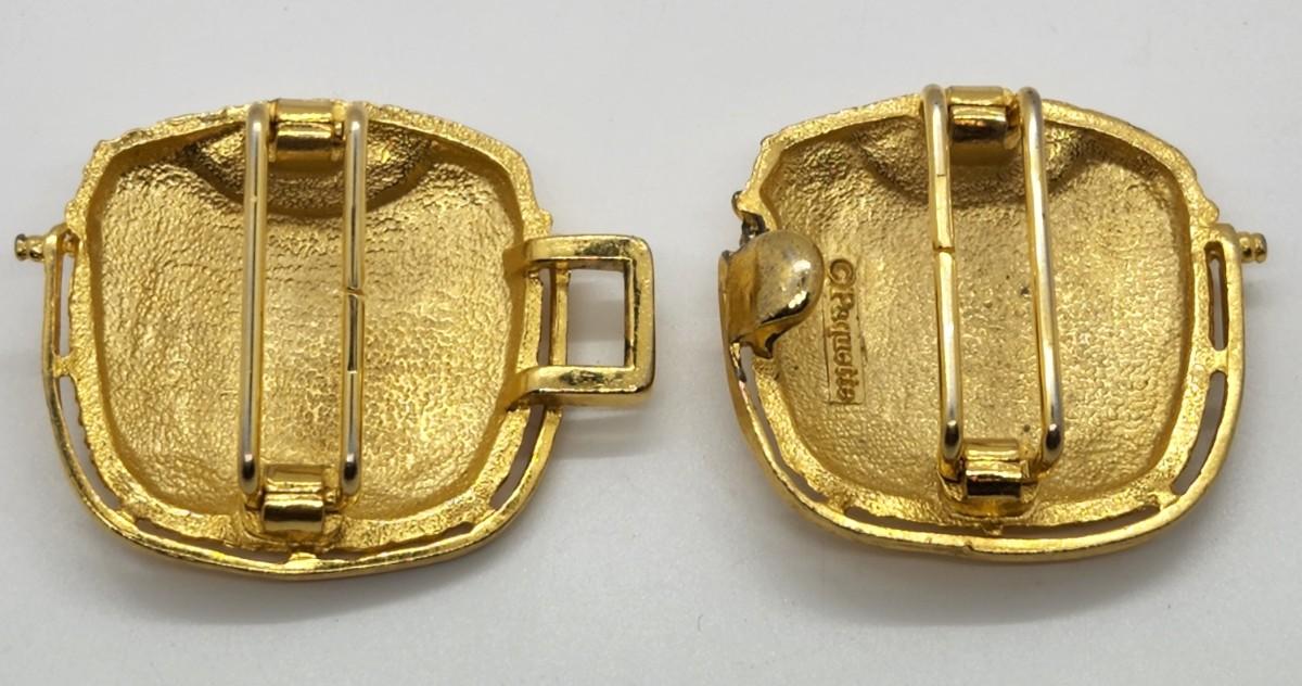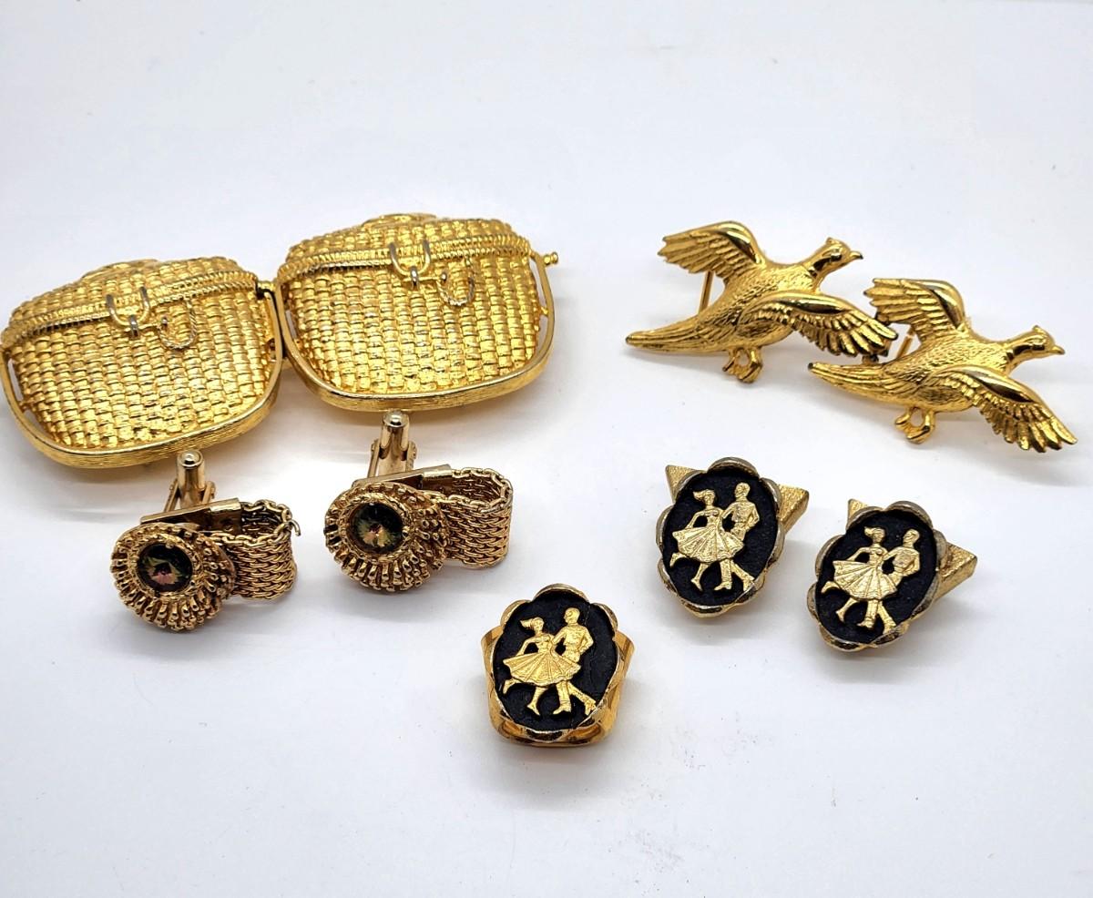 This collection is offering a nice assortment of collar tips w/ matching bolo slider, gorgeous faceted rhinestone cufflinks and two vintage iconic name brand buckles. Conditions of items vary. Please see all pictures as they are the best representation of the items. The pictures show condition, measurements if taken, and what is included in the lot. Due to the large amount that we photograph and the time frame, we are not always able to take measurements. All items unless noted, are pre-owned and have been used. If you purchased furniture, you must bring help. We do not allow one person to carry large furniture out on their own. Bring help, tools and a truck for the safety of our client’s homes, and your personal safety. Any damages that result to the property including walls, and floors due to moving of the furniture will be charged to the buyer. Company policy. Thank you.
