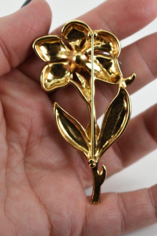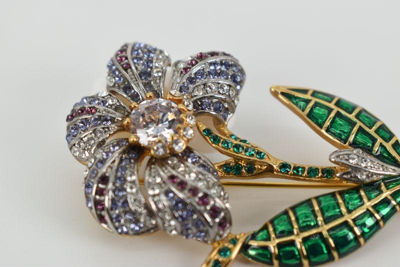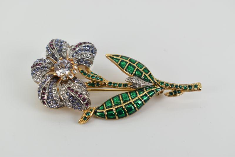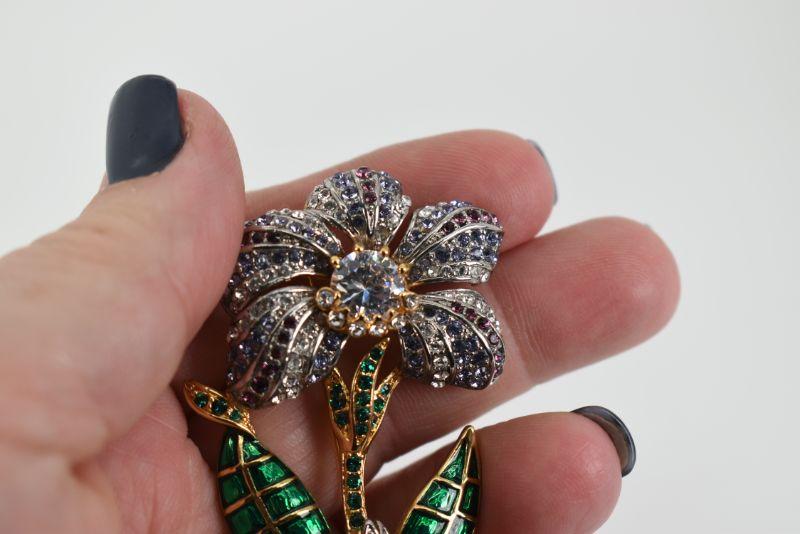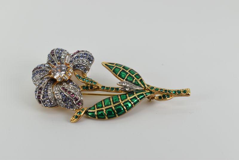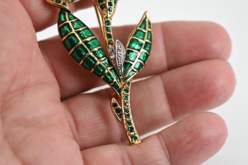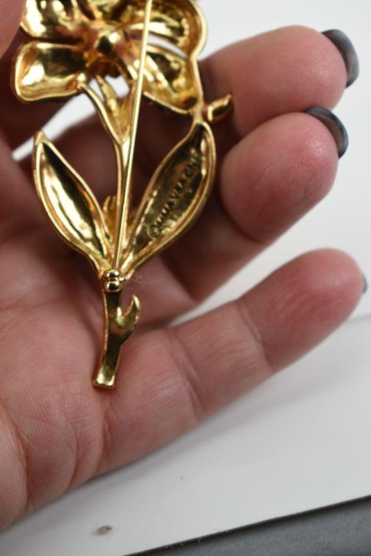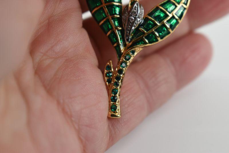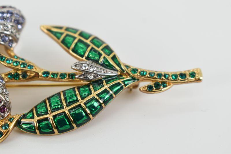 Excellent vintage condition. Vintage brooch from the Metropolitan Museum of Modern Art in collaboration with the Victoria and Albert Museum. This brooch features an elegant white and yellow gold plated frame decorated with shimmering green enamel accents with multi-colored crystal embellishments. Signed “MMA, V&A, CN". **Please read Terms and Conditions before placing a bid. Pick up is Sunday, December 22 from 11am to 3pm or Monday, December 23 from 4pm-7pm in Mantua, NJ. All sales are final. All sales are as is, where is. Please review all photos. Props are not included. Measurements are approximate.