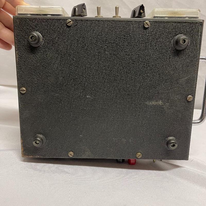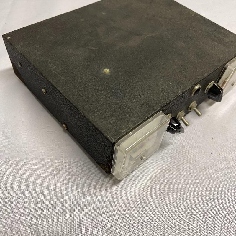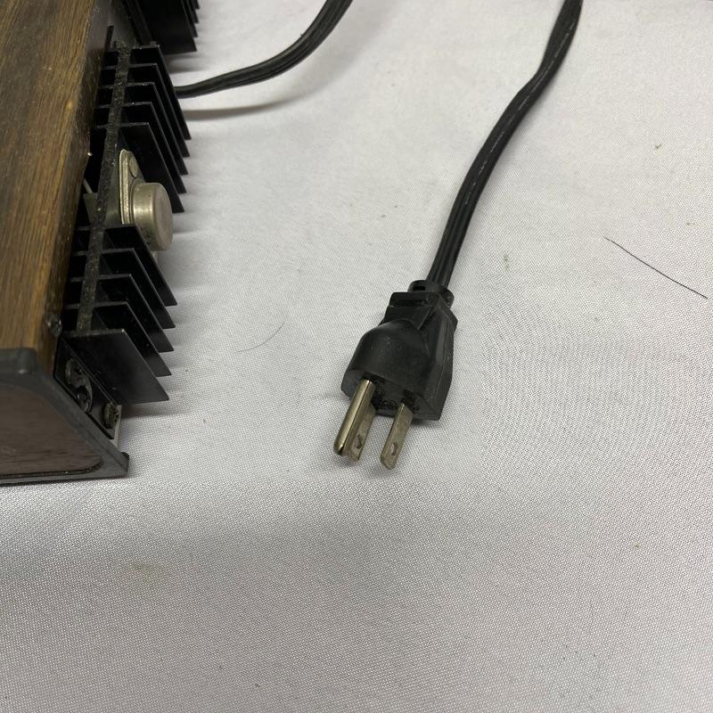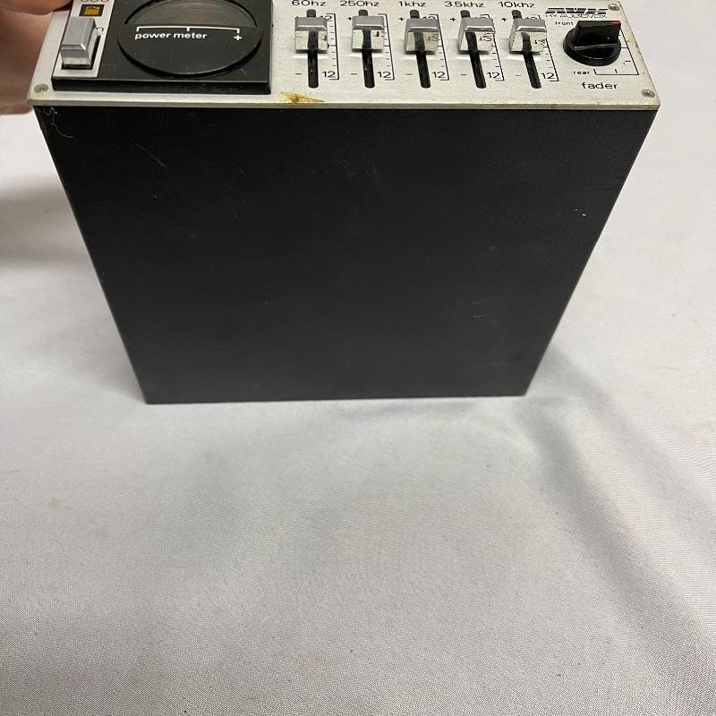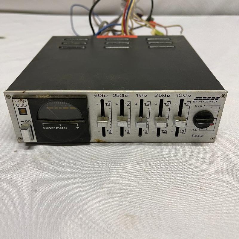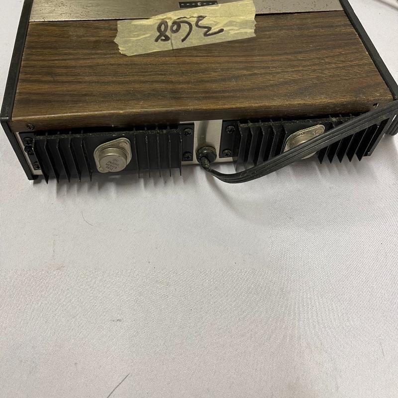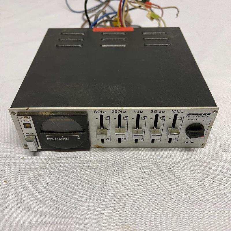 Three units of power equipment. The first is a Shurite model 850. The second is an Elenco Precision variable regulated power supply, model XP-655. When plugged in, it powered on. The last is a fader by Audiovox, model number AMP-600C.