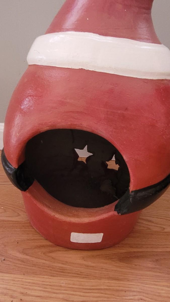 Candle goes in the backside and Santa's belly lights up