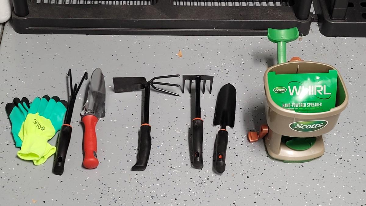 Lot 213: Gardening Hand Tools and Scott's Seed Spreader