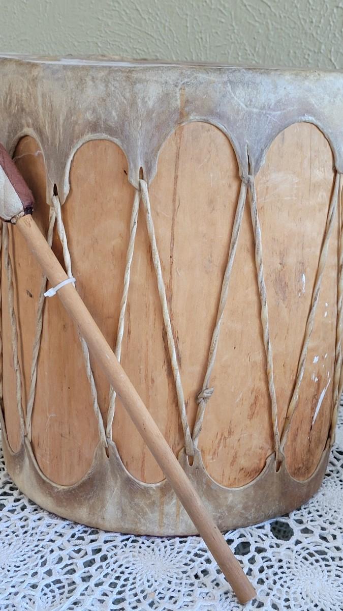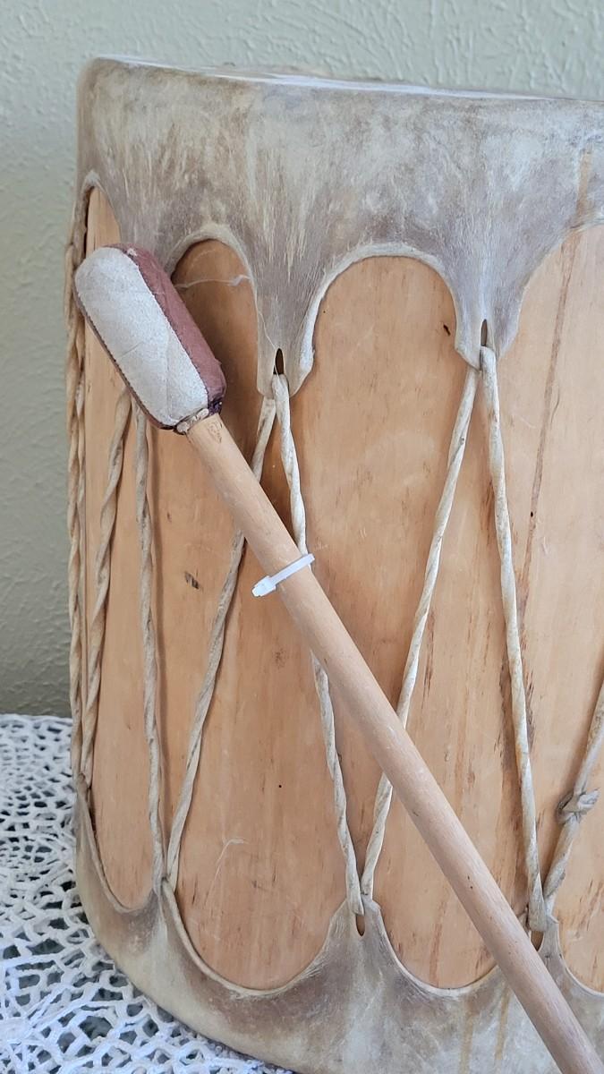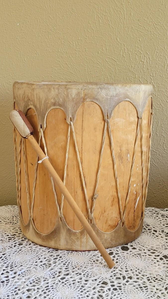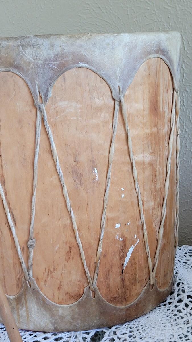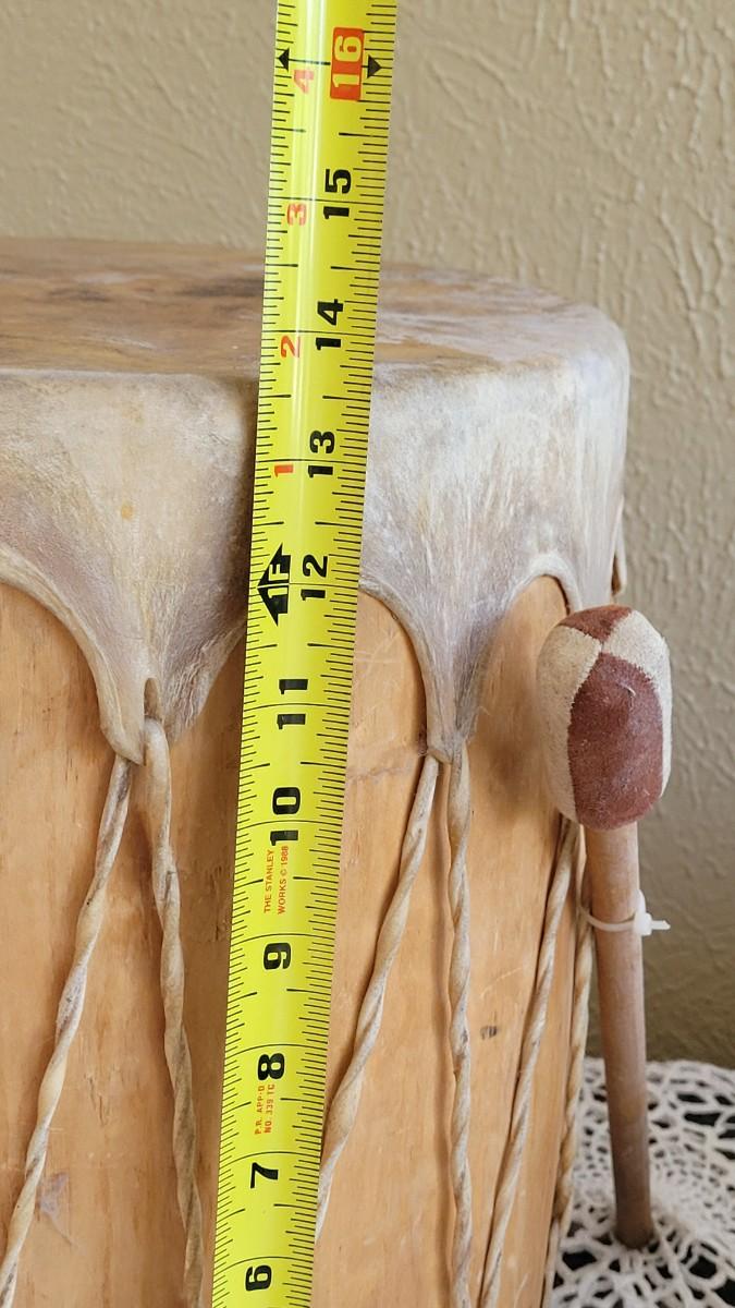 Lot 213: Native American Tom Tom Hide & Wood Drum with Leather & Wood Mallet