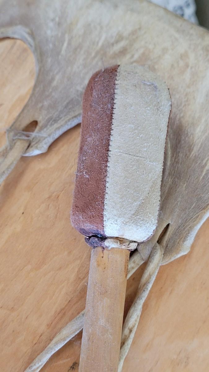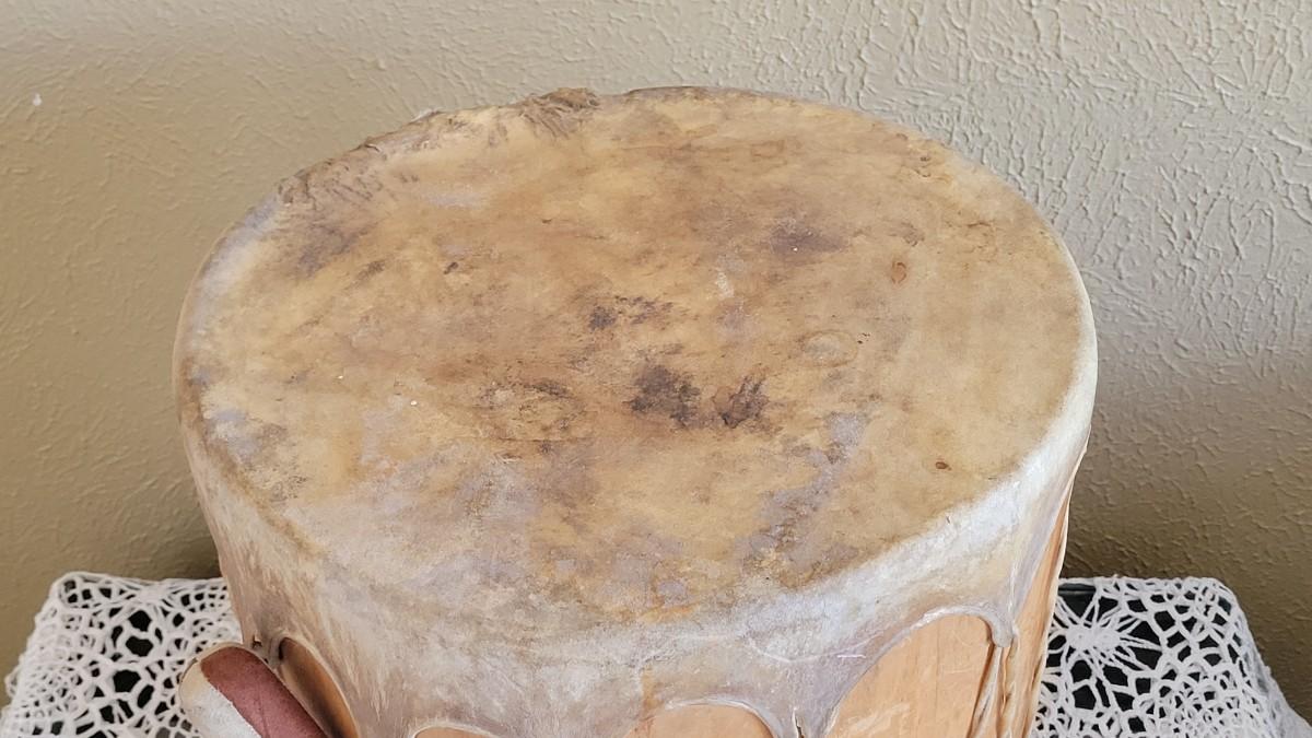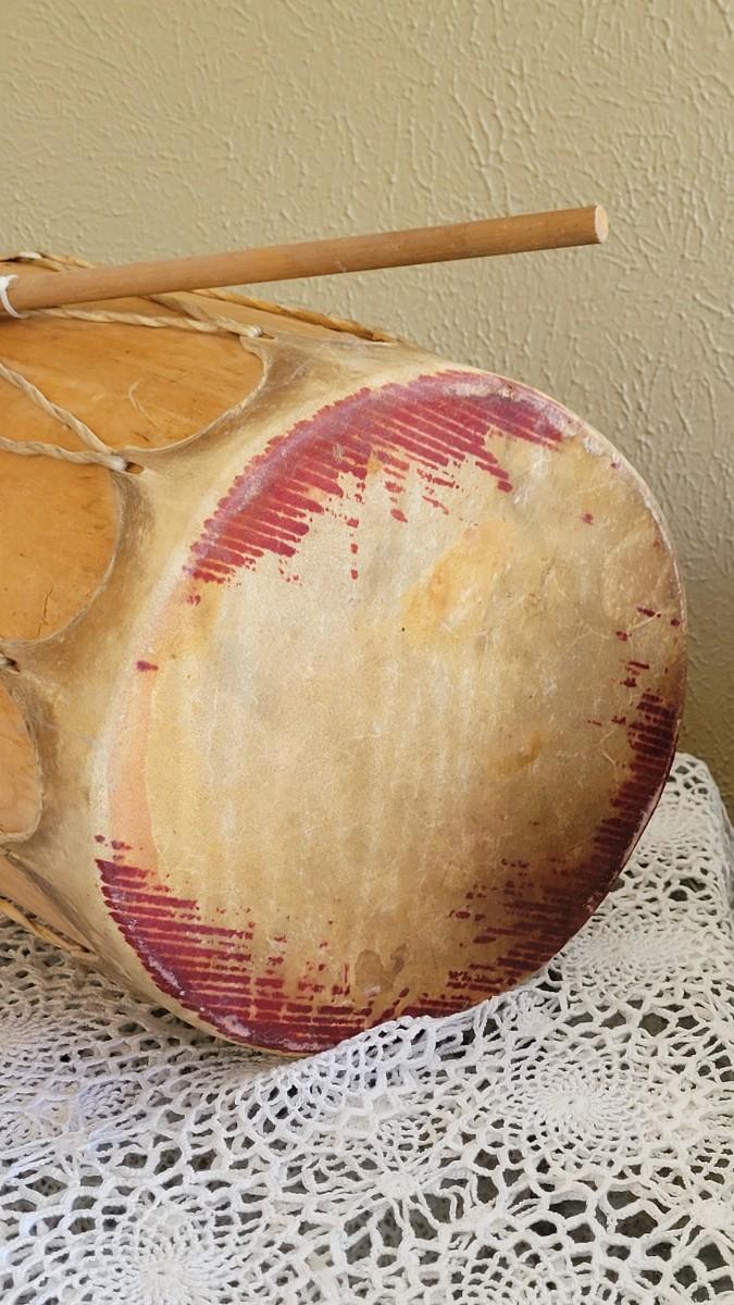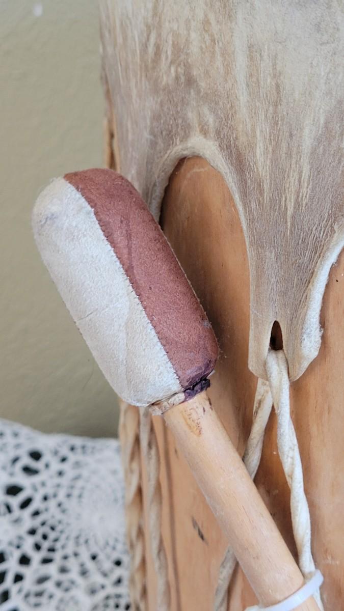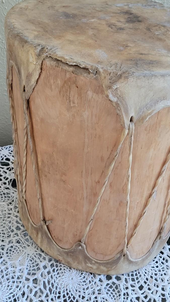 Lot 213: Native American Tom Tom Hide & Wood Drum with Leather & Wood Mallet