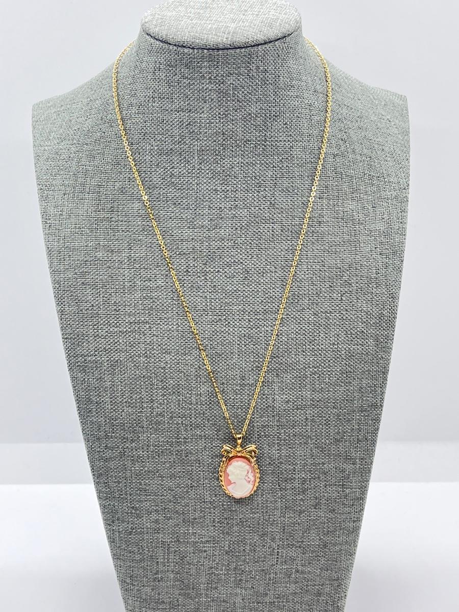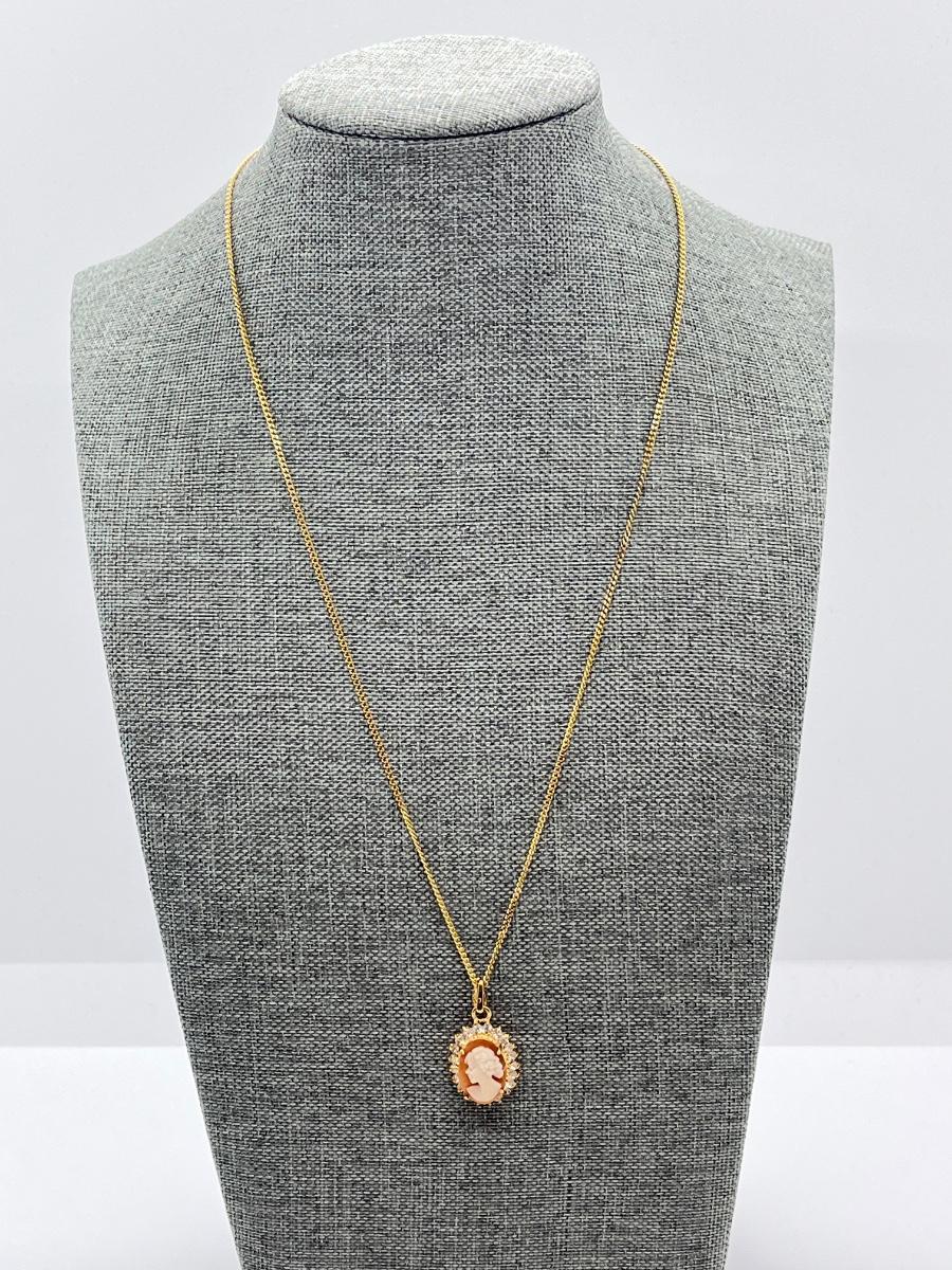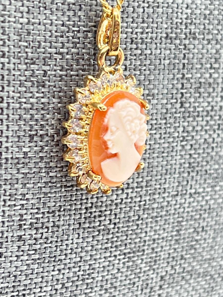 LOT 213: Three Small Cameo Pendants on Thin Goldtone Chains
