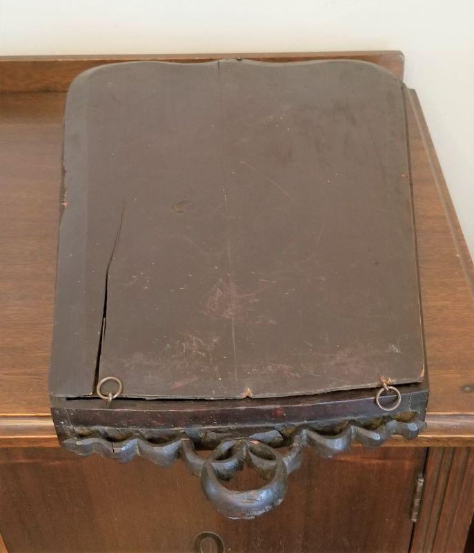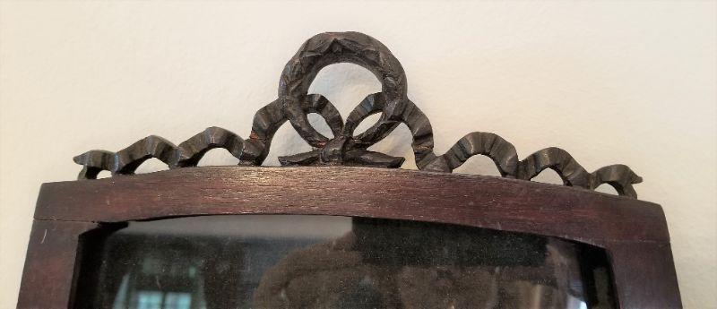 Cook antique Shadow box - meant to be wall mounted (needs wire on back). All original - easy to reline. Measures 23.5" tall at tallest point, 14" across at the base. Has the glass. Antique condition as shown. An interesting piece.