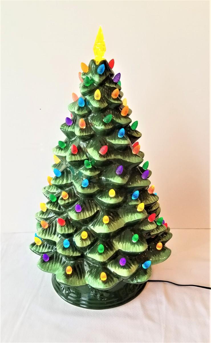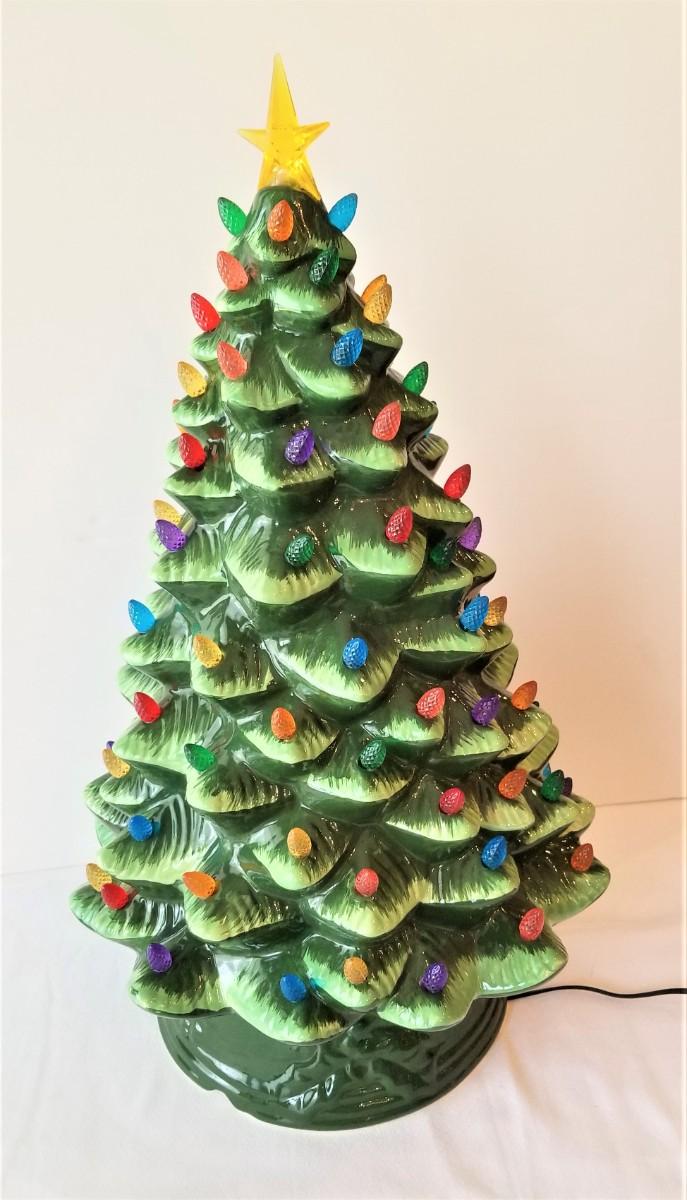 Mr. Christmas brand Nostalgic Ceramic Tree. Switch on the end. 18" tall. Bulbs do not come out. Good working condition. - this is new and had never been removed from box - we took it out to photograph it.