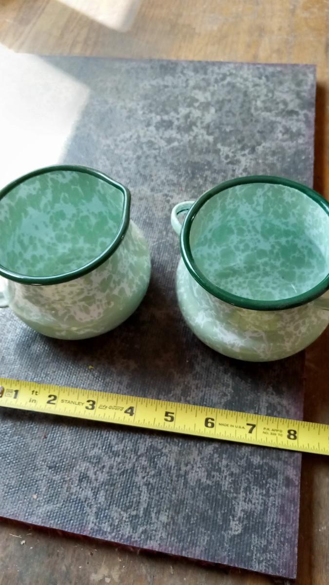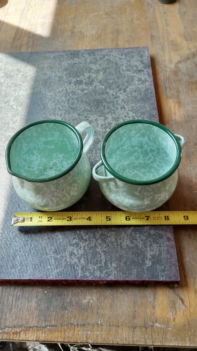 LOT 213 ENAMELWARE SUGAR & CREAMER SET