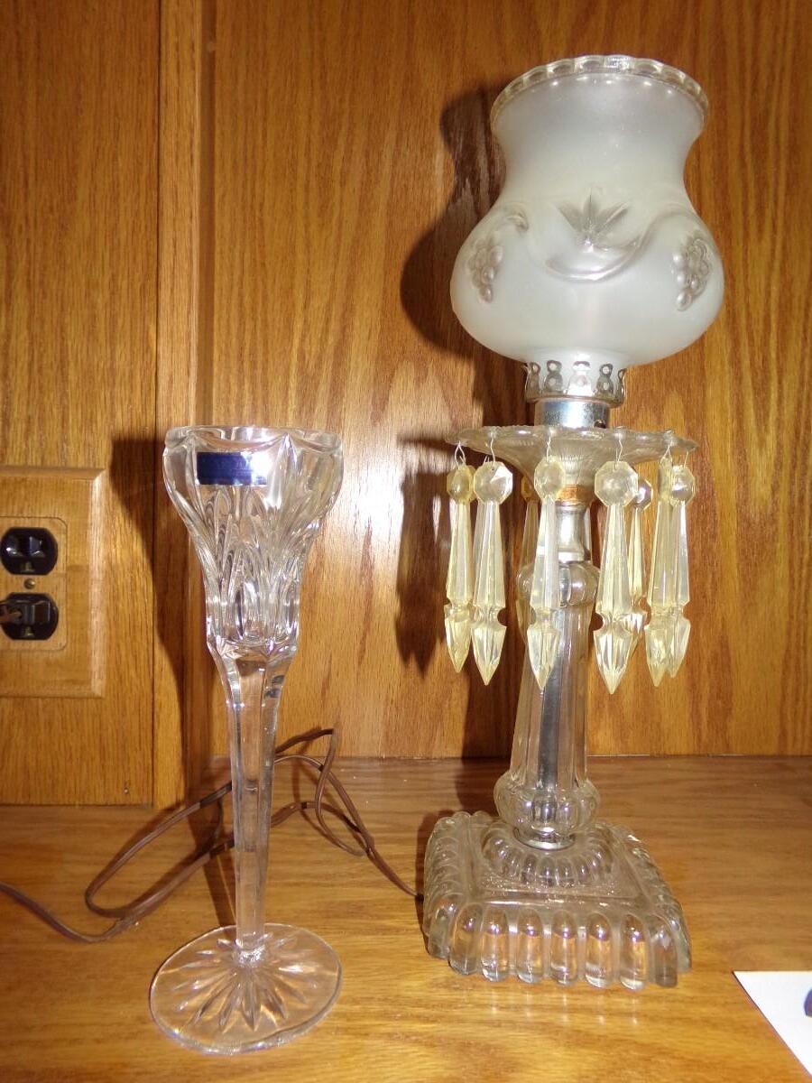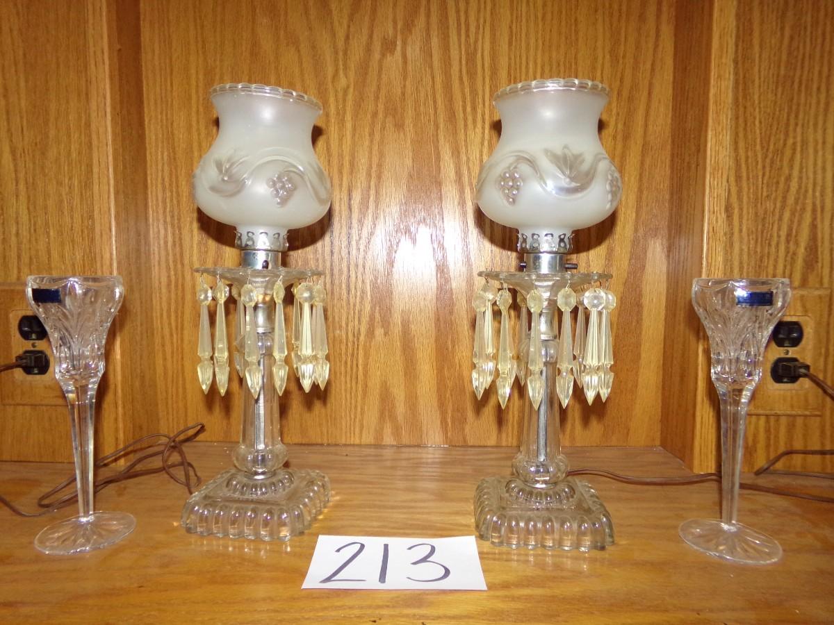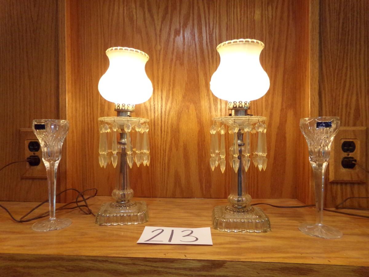 LOT 213 GLASS & CRYSTAL TABLE LAMPS