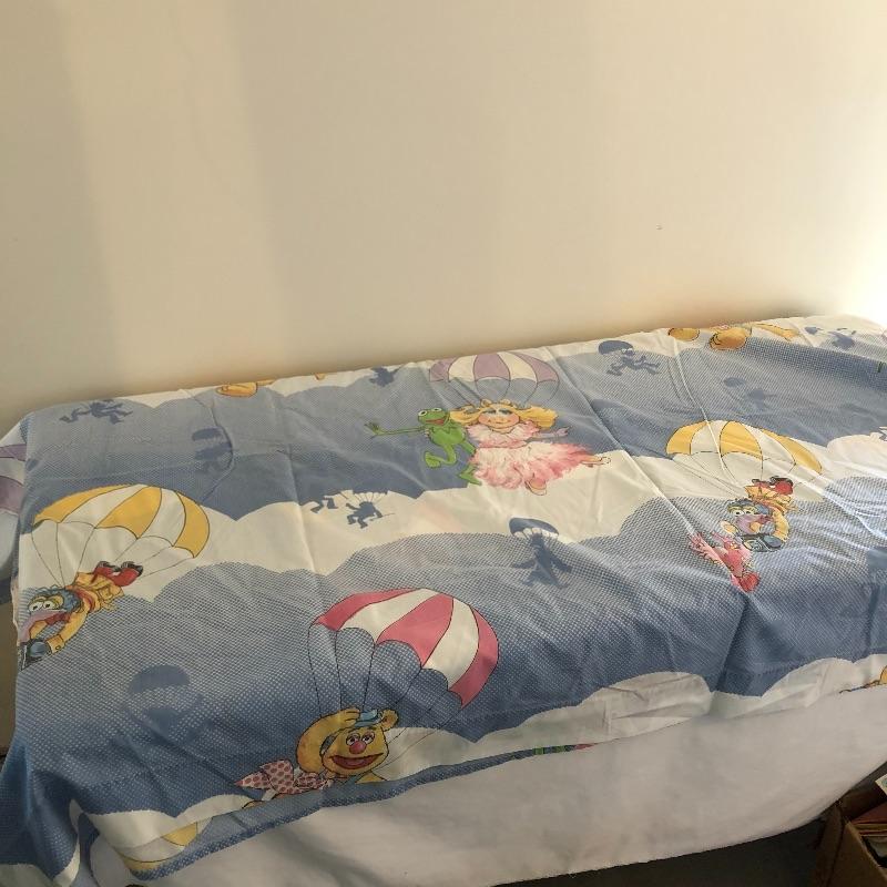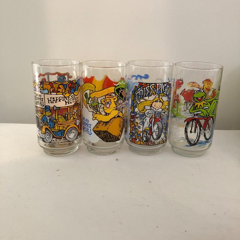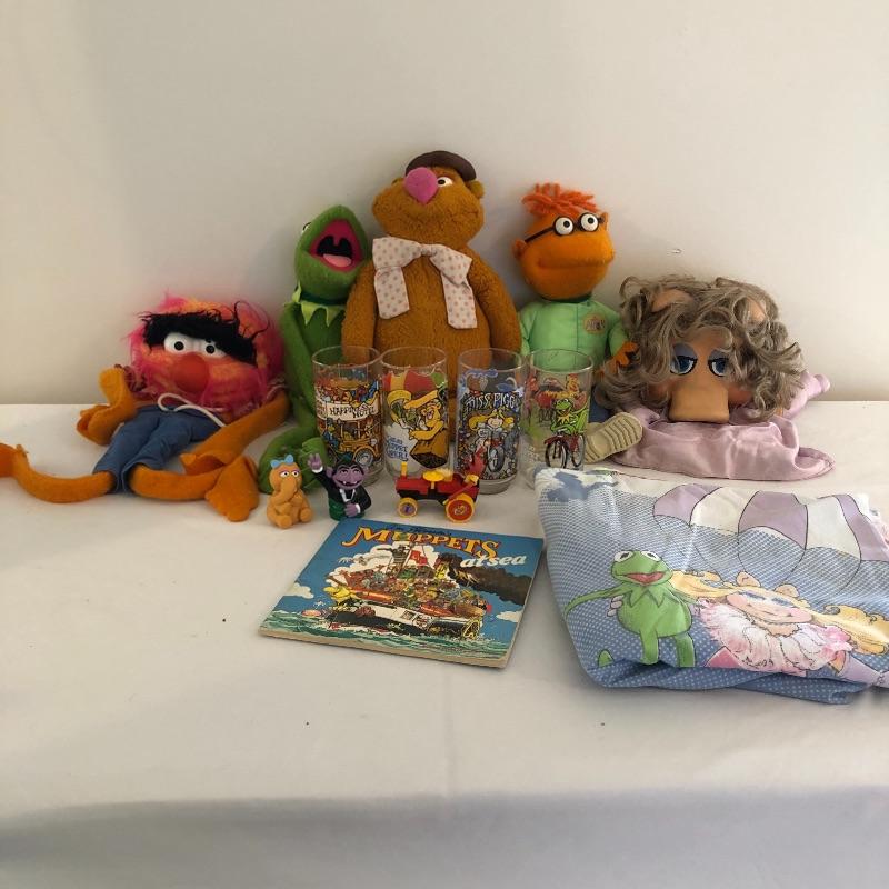 You can never have too many Muppets. Lot includes Kermit, Miss Piggy, Scooter, Fozzie Bear and Animal. Also includes Muppets book, four glasses, full sheet and three figurines. Animal measures 25.5” tall.