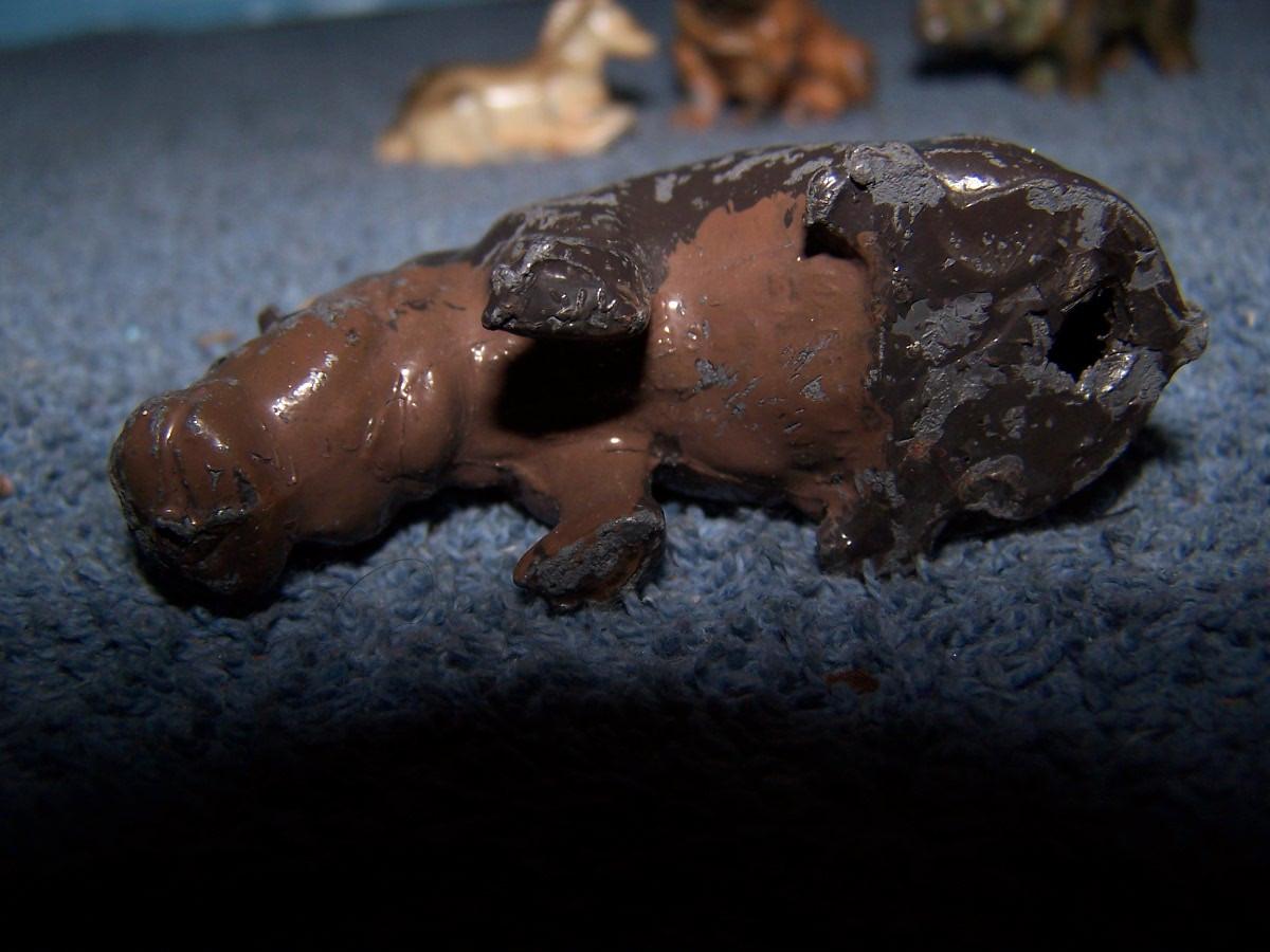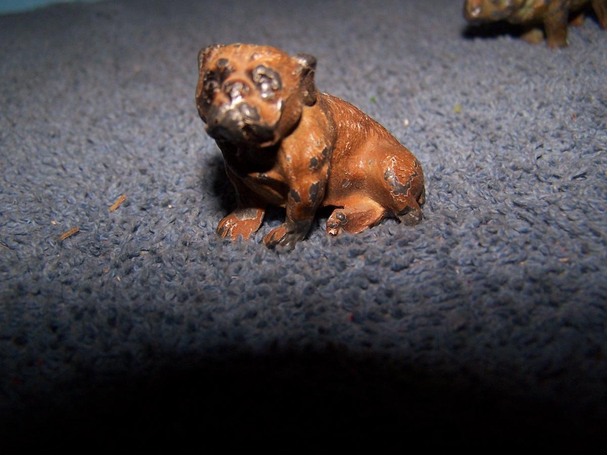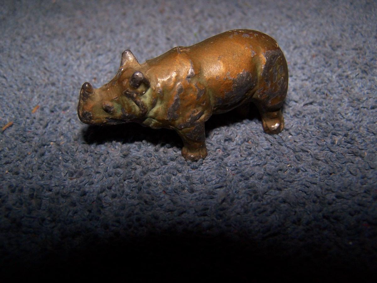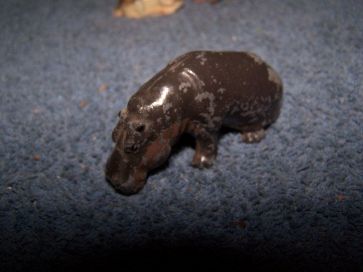 THESE ARE GREAT OLD METAL MINI CRITTERS! HIPPO IS MARKED.. DOG IS 1 1/4'' TALL.. BENDS/PAINT LOSS/WEAR..