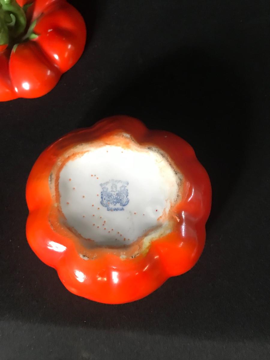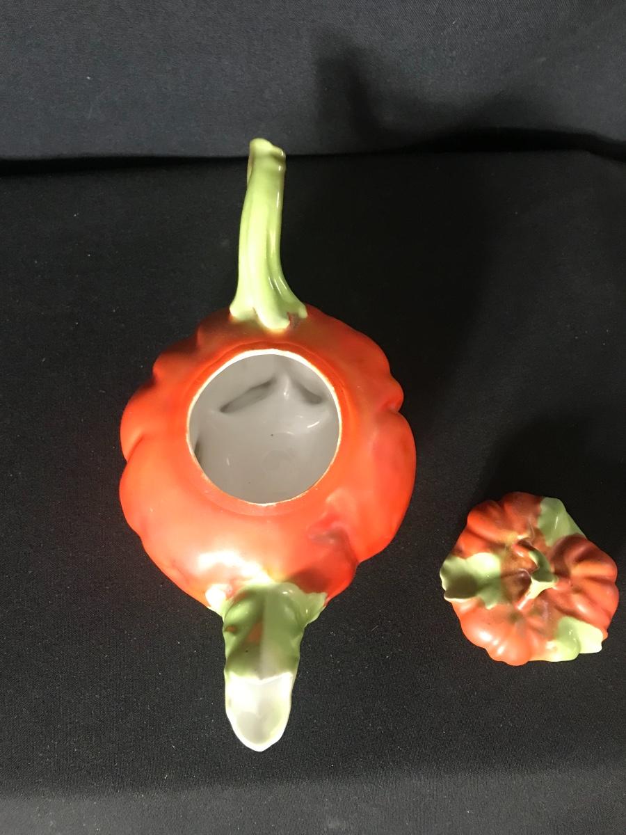 Royal Bayreuth Bavaria Porcelain Tomato Teapot and Covered Dishes.. Some chipping to paint - most significantly on larger of two covered dishes. Please see all pictures as they are the best representation of the items. The pictures show condition, measurements if taken, and what is included in the lot. Due to the large amount that we photograph and the time frame, we are not always able to take measurements. All items unless noted, are pre-owned and have been used. Please bring packing materials for your items. If you purchased furniture, you must bring help. We do not allow one person to carry large furniture out on their own. Bring help, tools and a truck for your personal safety. Company policy. Thank you.