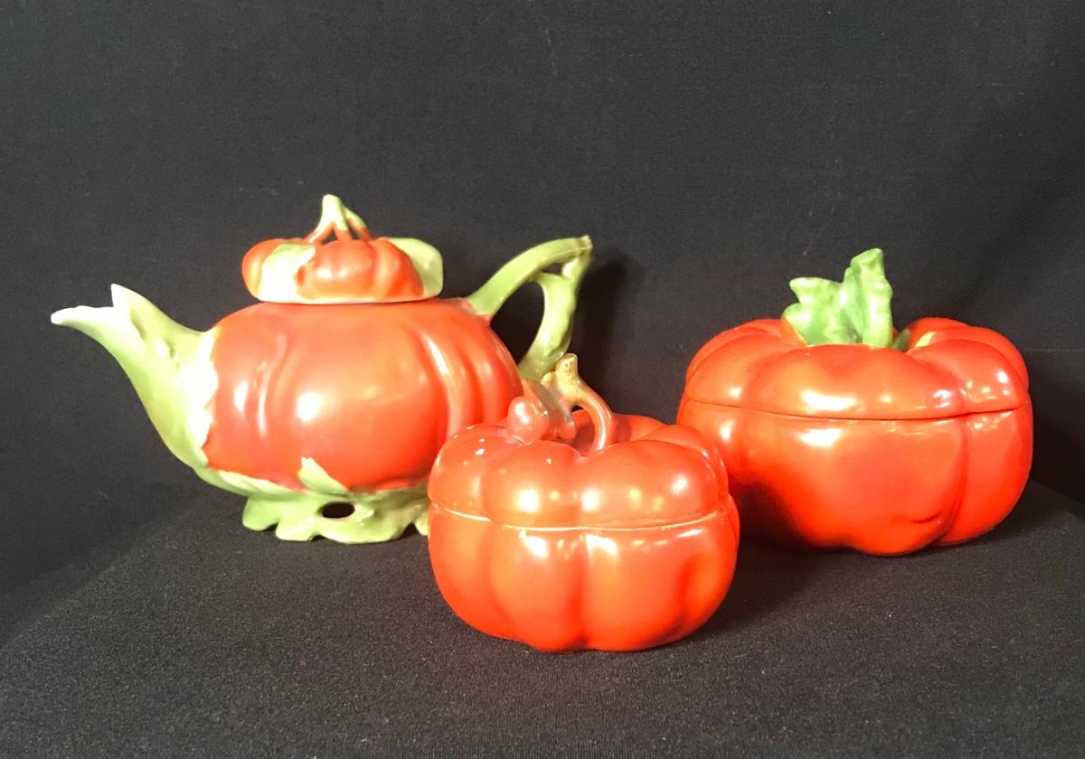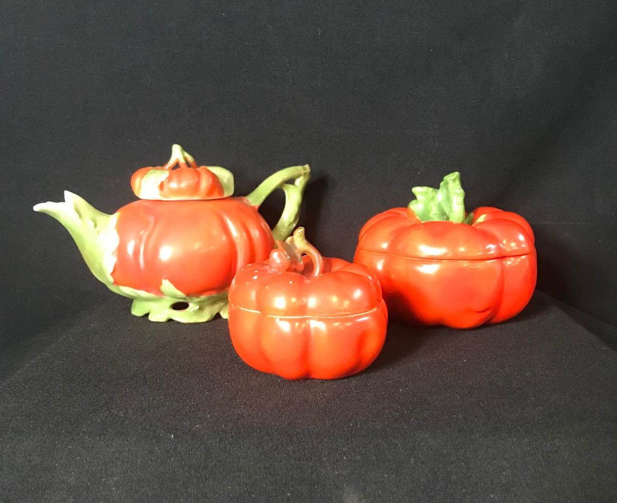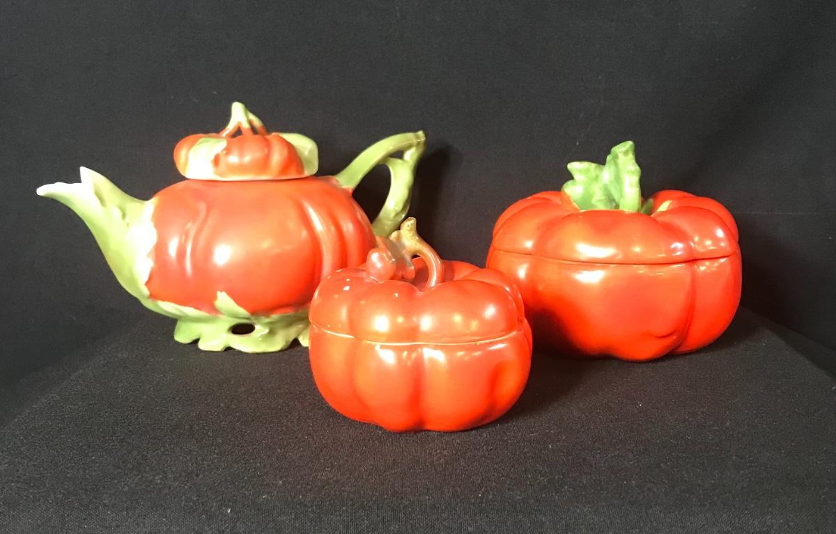 Lot 213: Royal Bayreuth Bavaria Porcelain Tomato Teapot and Covered Dishes