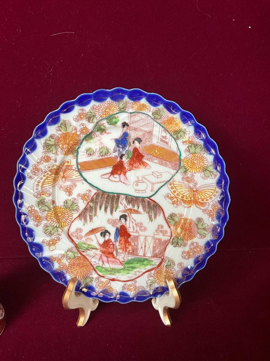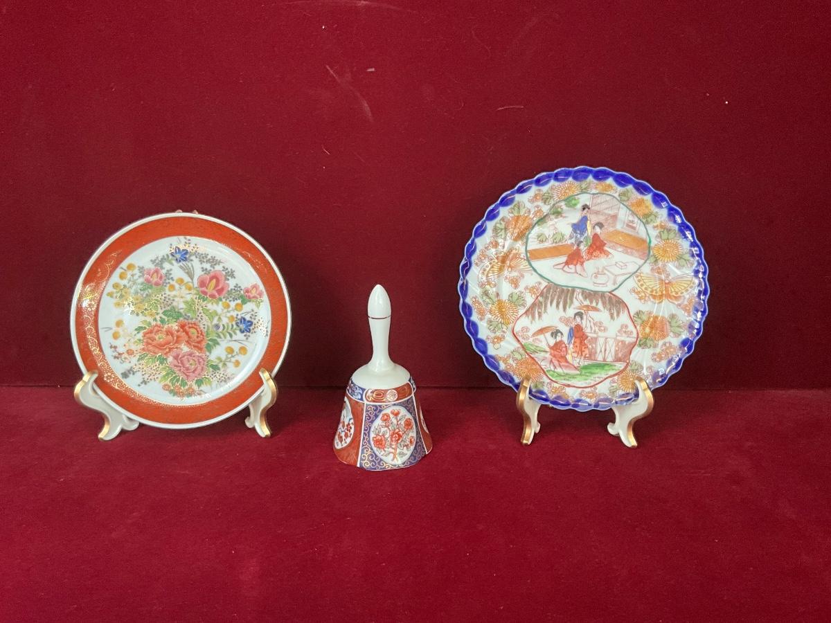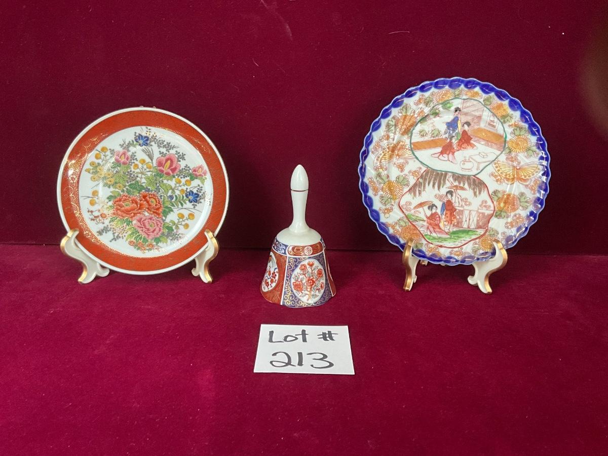 Lot# 213 Vintage Japanese Style Small Porcelain Bell & Two Plates
