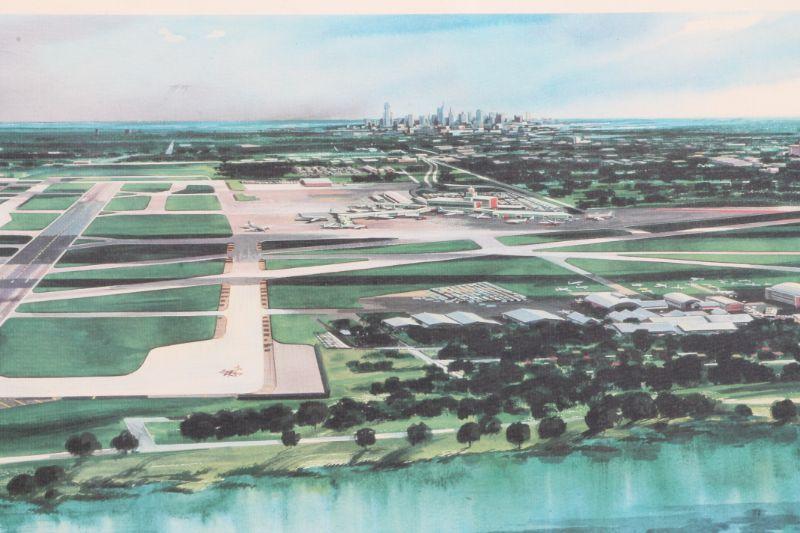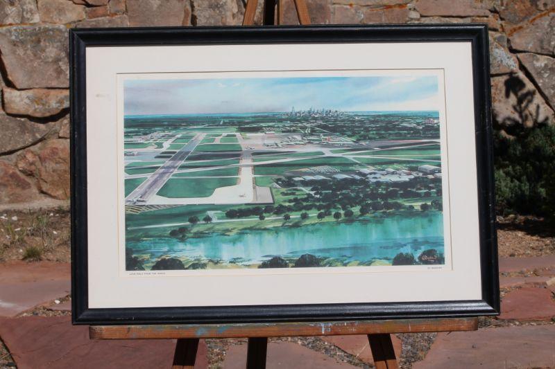 Lot 2-134: Vintage 1962 ED BEARDEN Mid Century Modern Lithograph Framed LOVE FIELD FROM THE NORTH {25.5" x 18"}