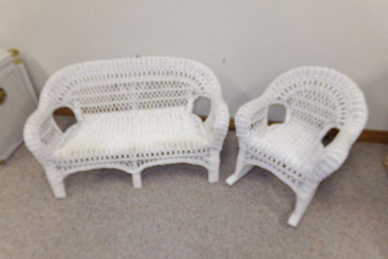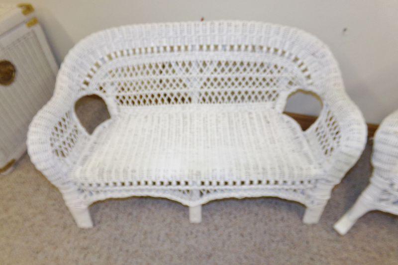 WICKER LOVE SEAT AND ARMED CHAIR IN GOOD-VG CONDITION