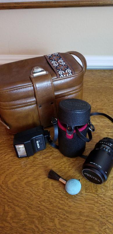 LOT #214: Vintage 35mm Camera Accessory Bundle (Lens, Brush and Flash w/ Case)