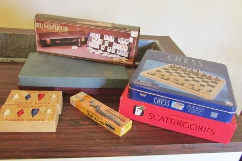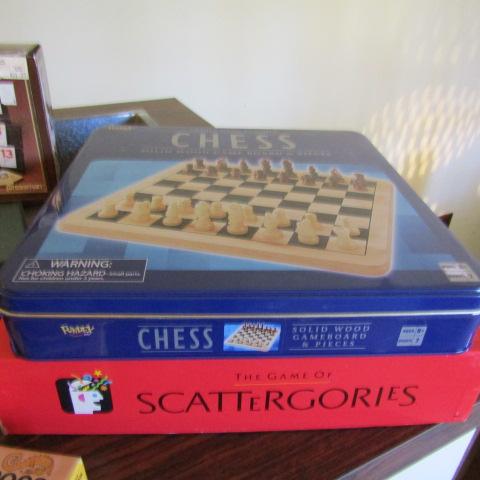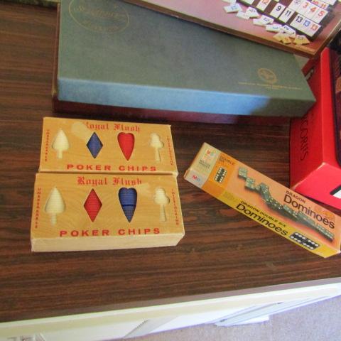 SCRABBLE FOREIGN EDITION, TOURNAMENT RUMMIKUB, CHESS, SCATTERGORIES, POKER CHIPS & DOMINOES