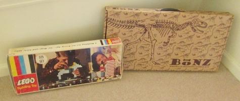 VINTAGE LEGOS & UNOPENED BOX OF BONZ (WOODEN 3-D SKELETON PUZZLE KIT)