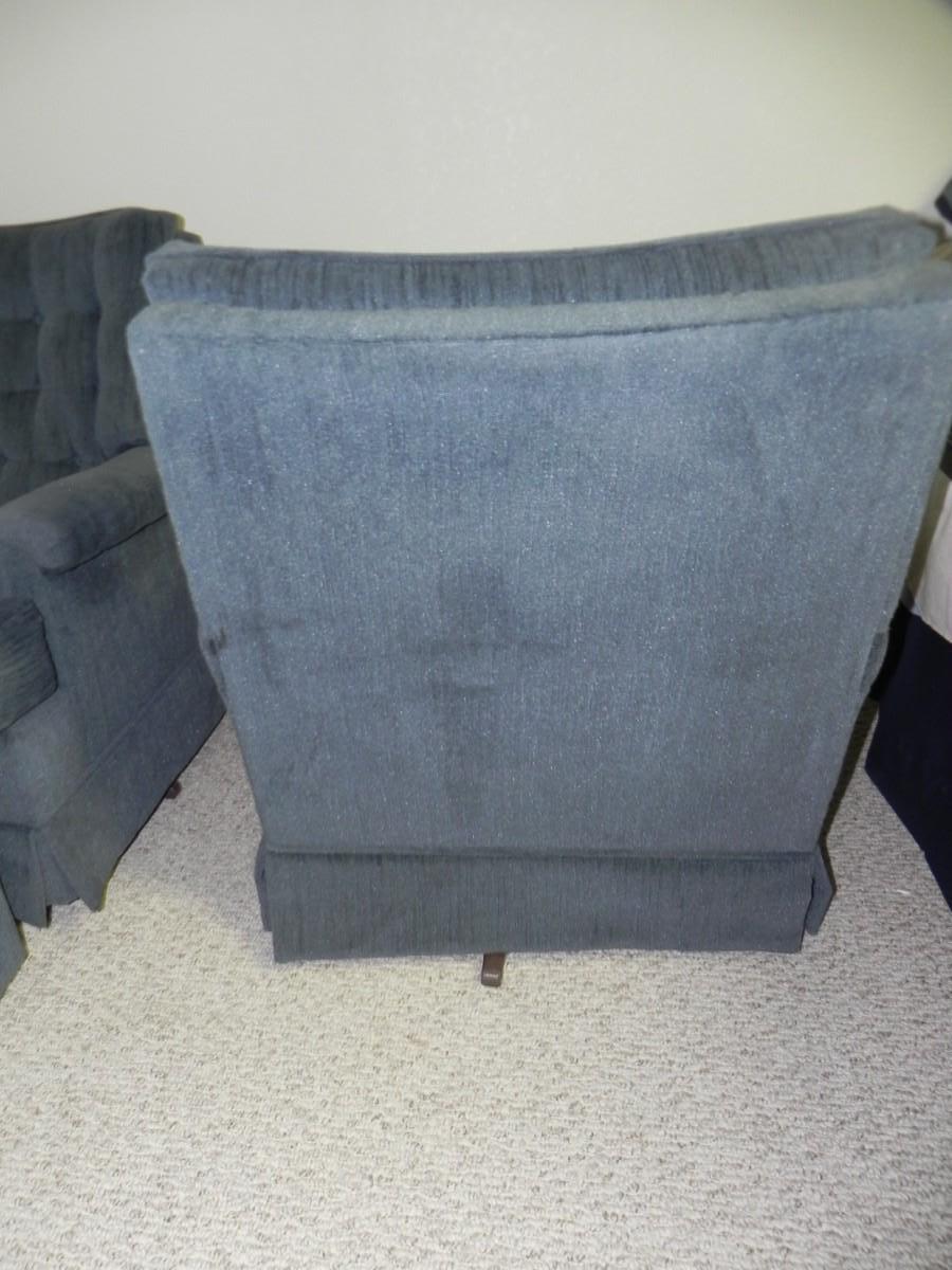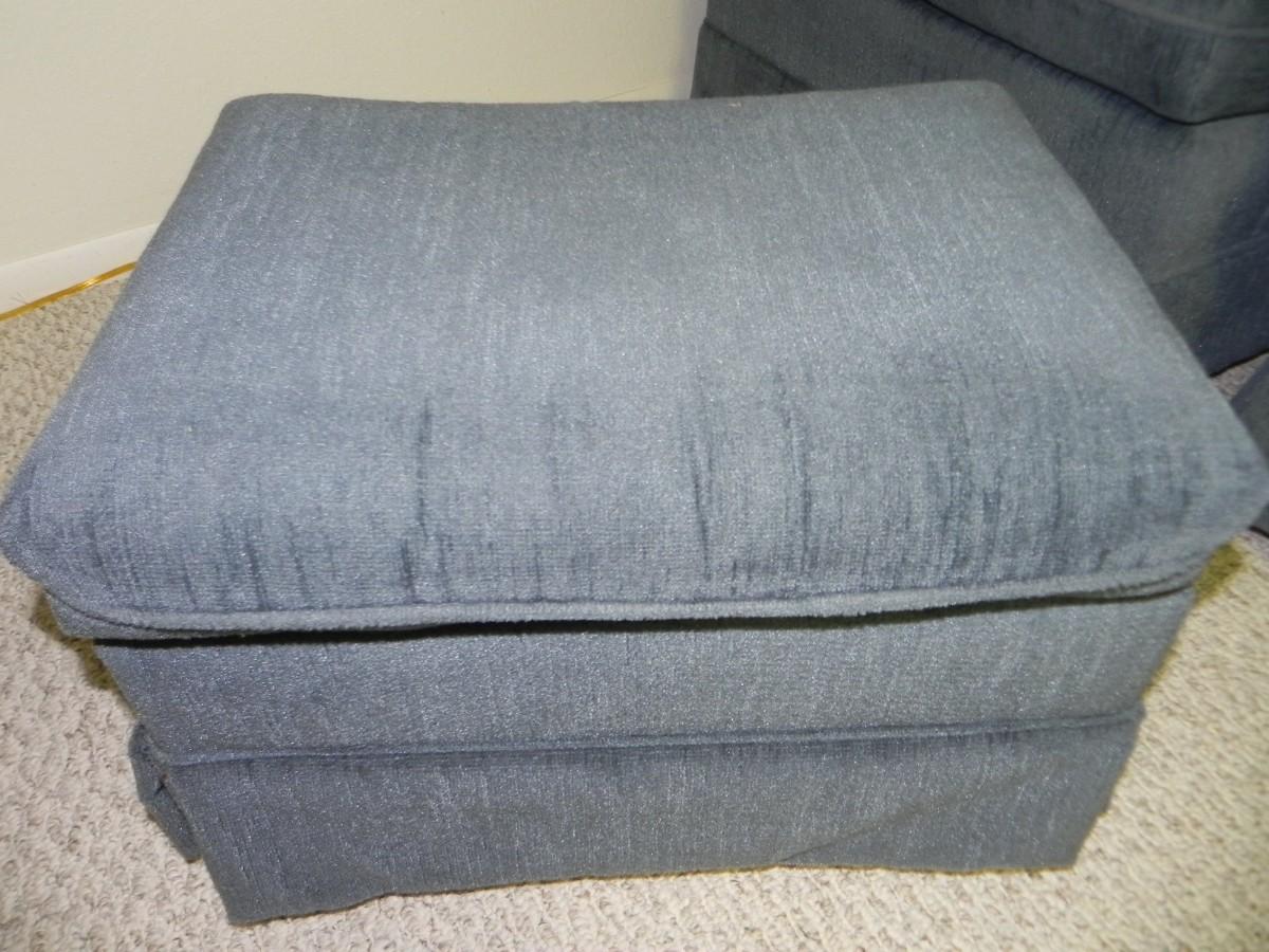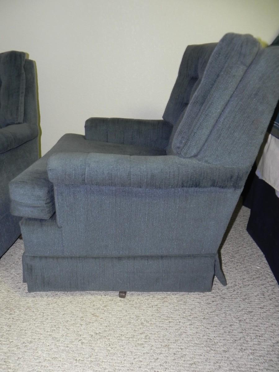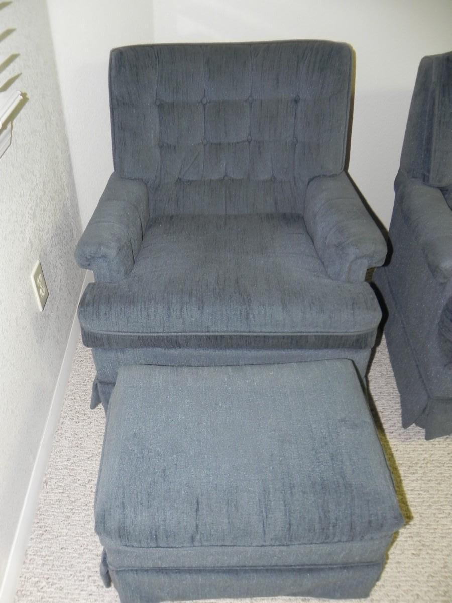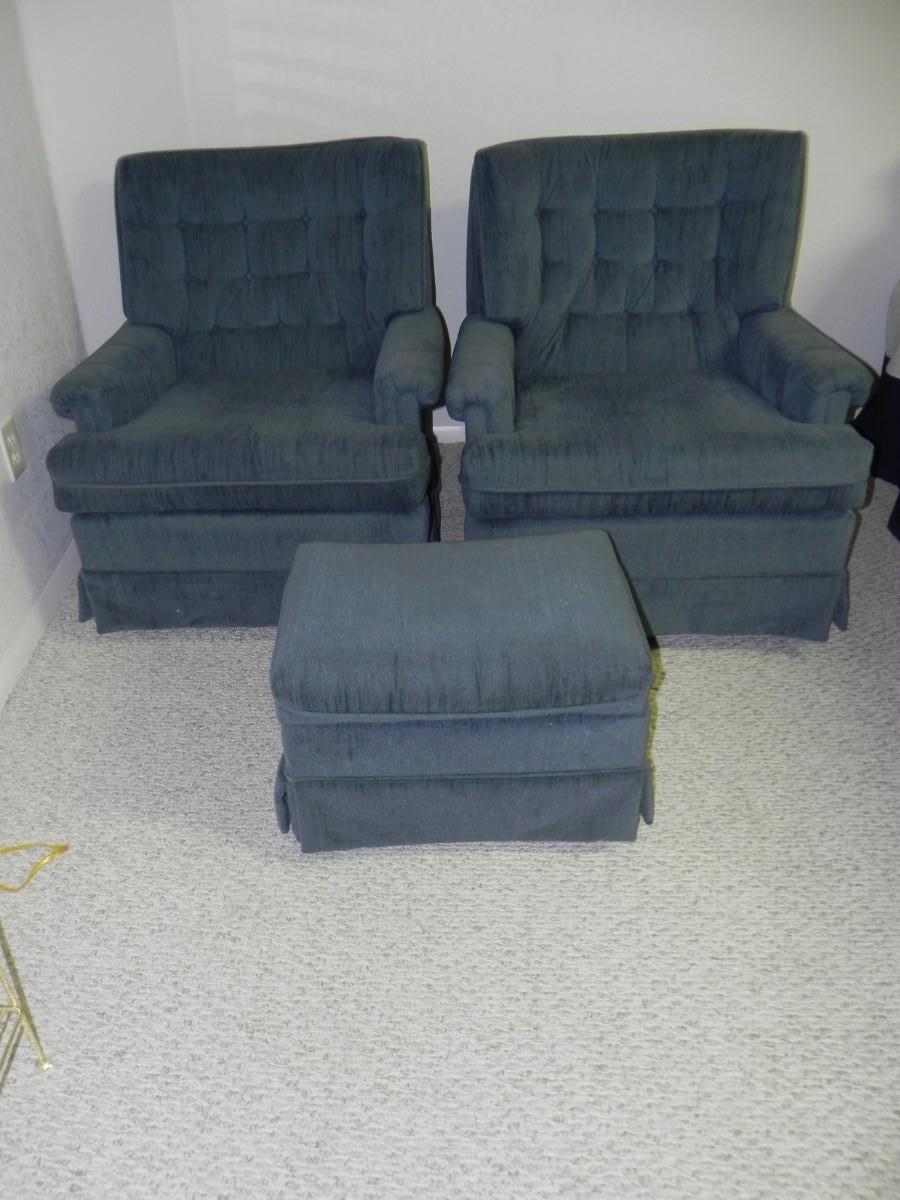 TWO MATCHING UPHOLSTERED CHAIRS THAT ROCK & OTTOMAN
