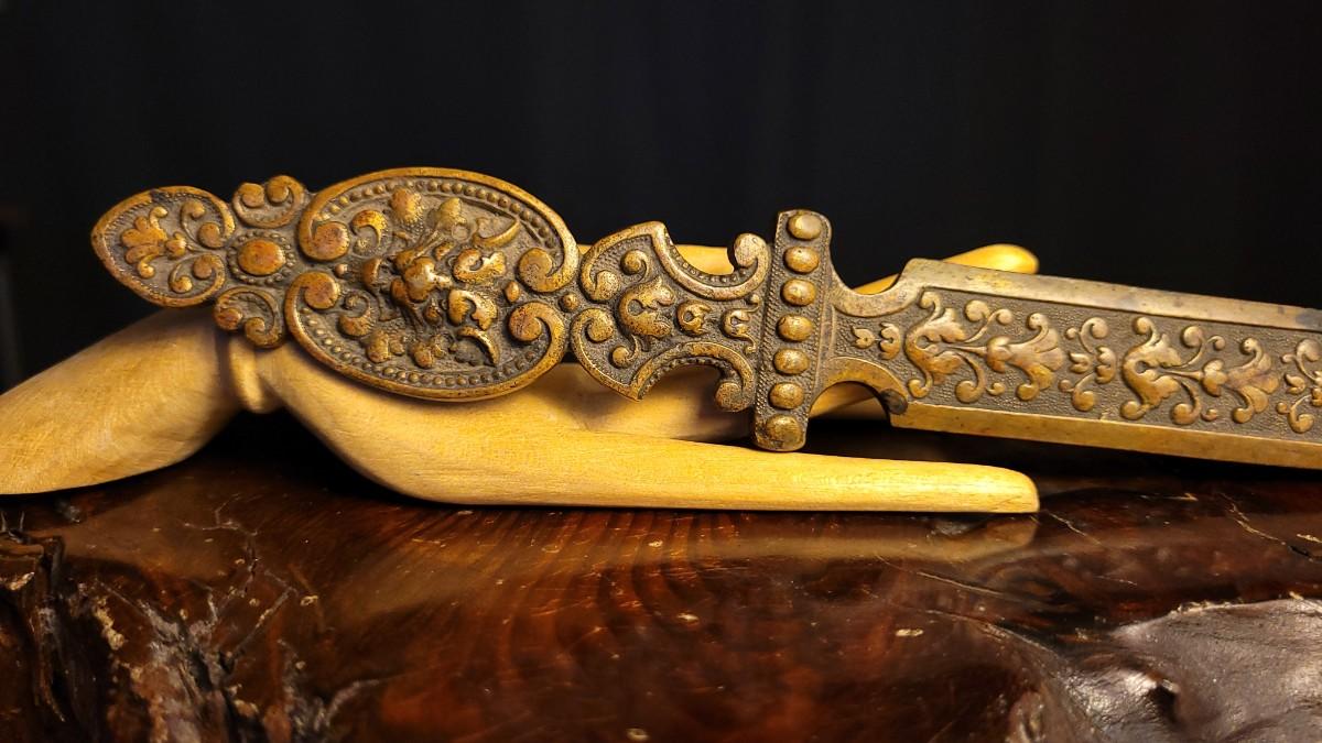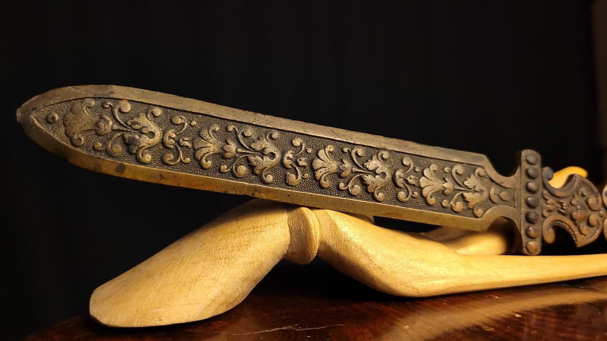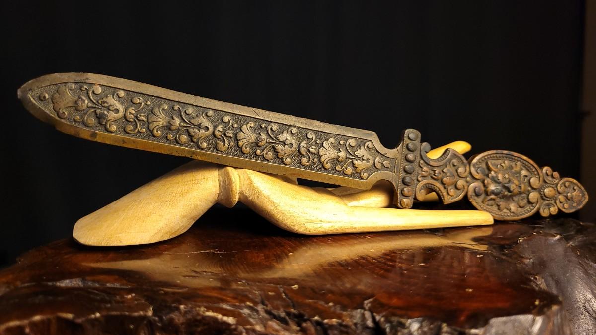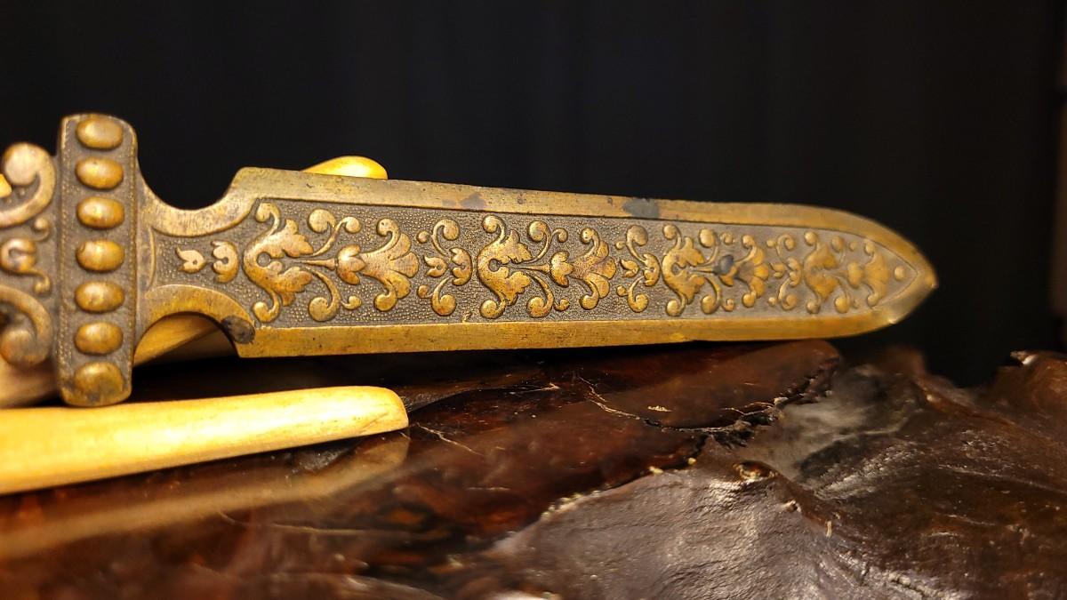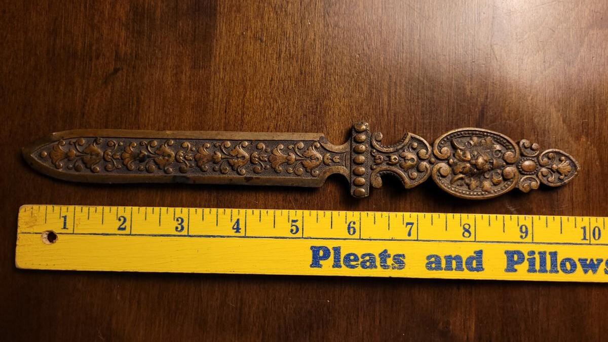 Lot 214: Antique Metal Letter Opener Engraved Dragon Motíf Handle