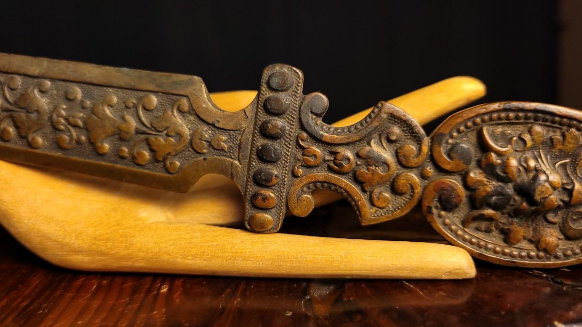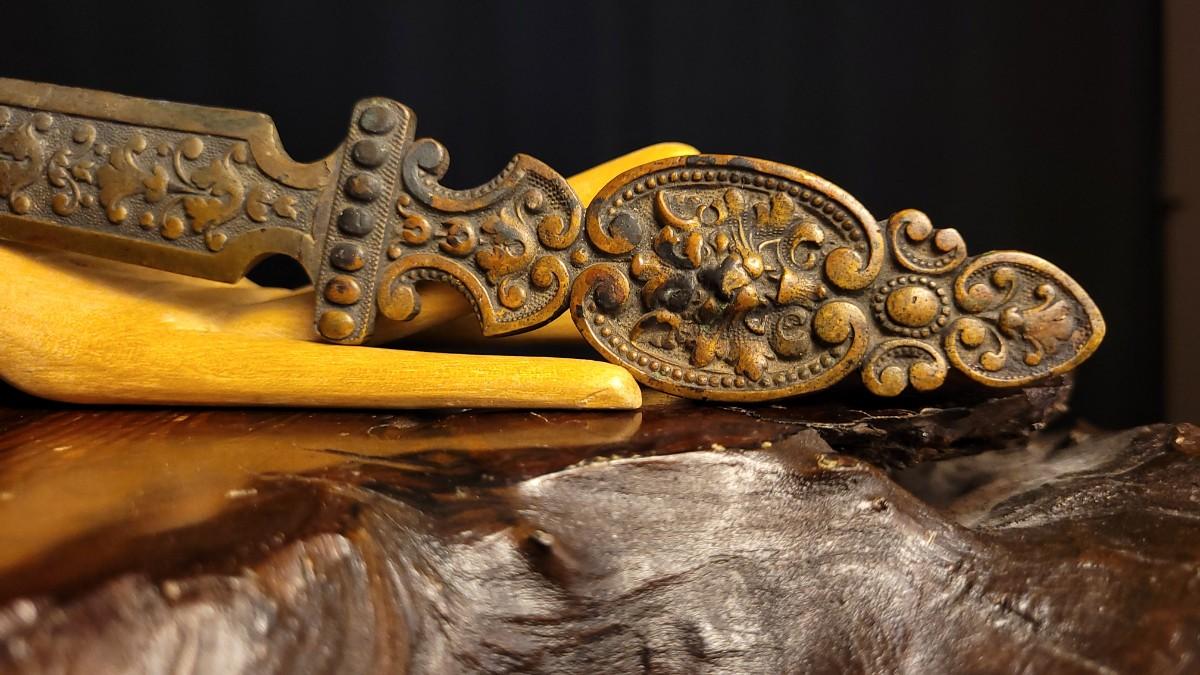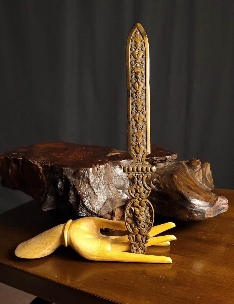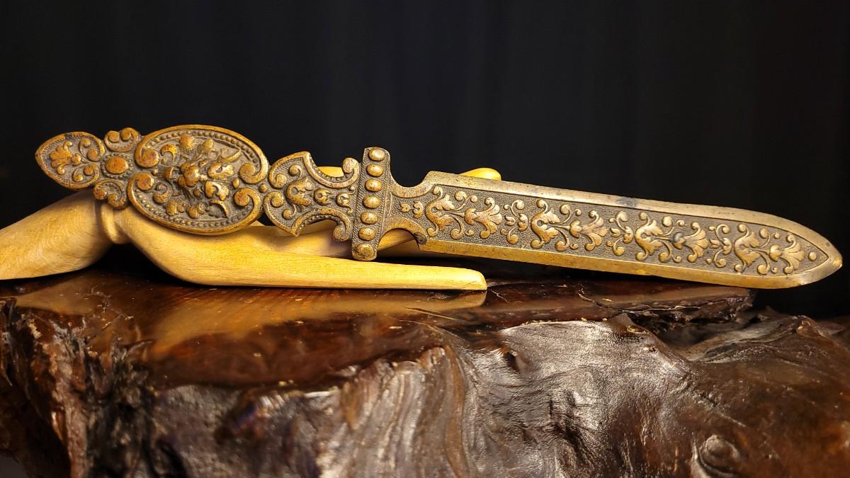Lot 214: Antique Metal Letter Opener Engraved Dragon Motíf Handle
