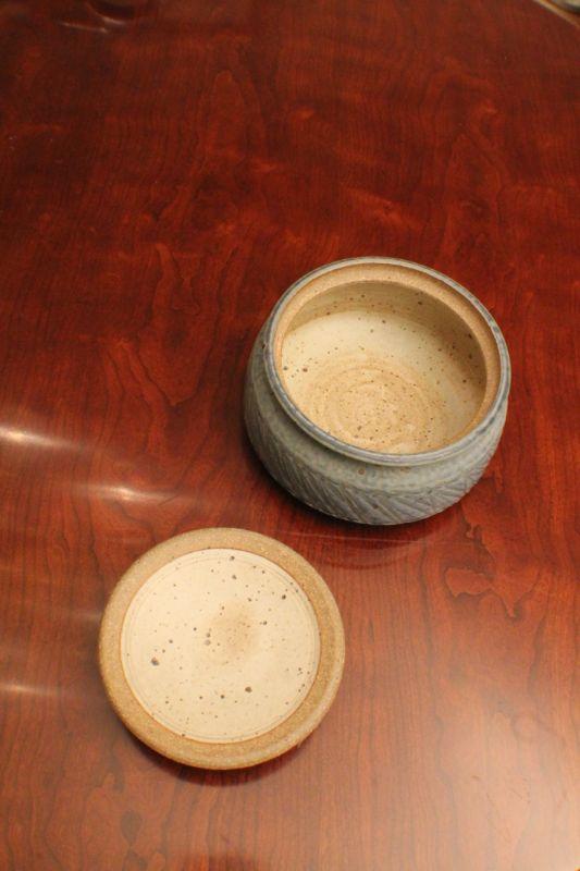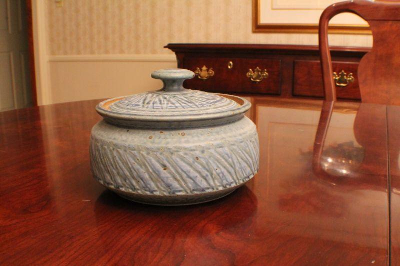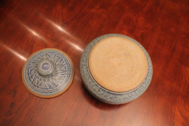 Lot 214: Blue Ceramic Vessel with Lid (Signed)
