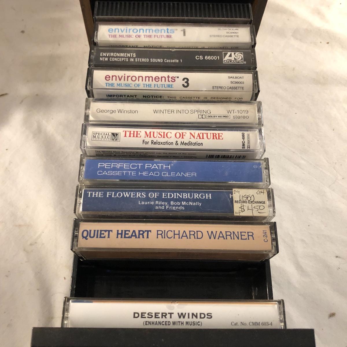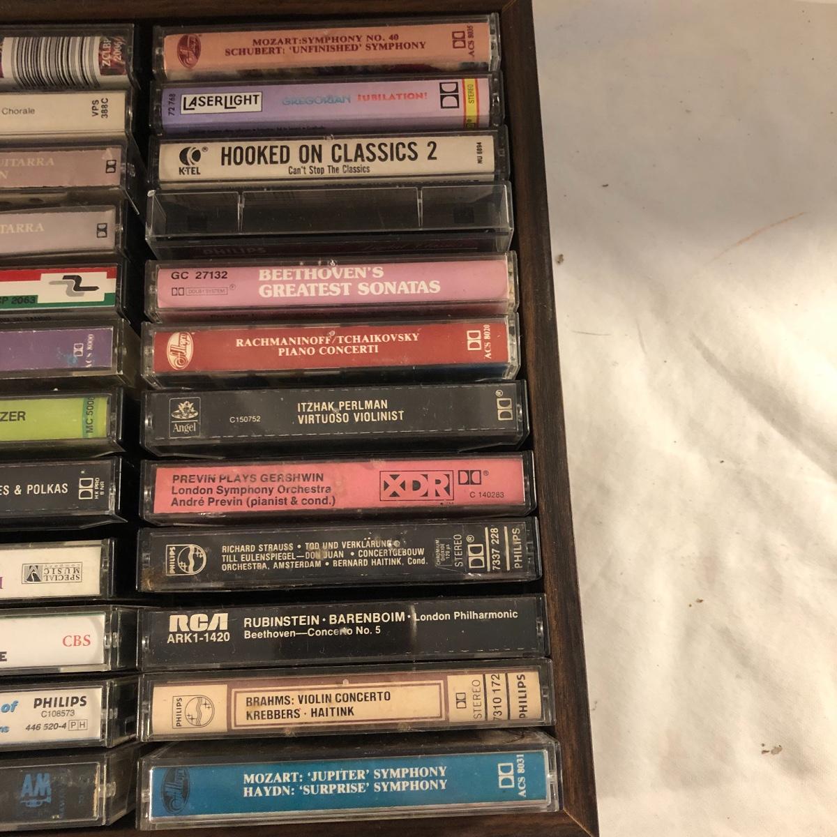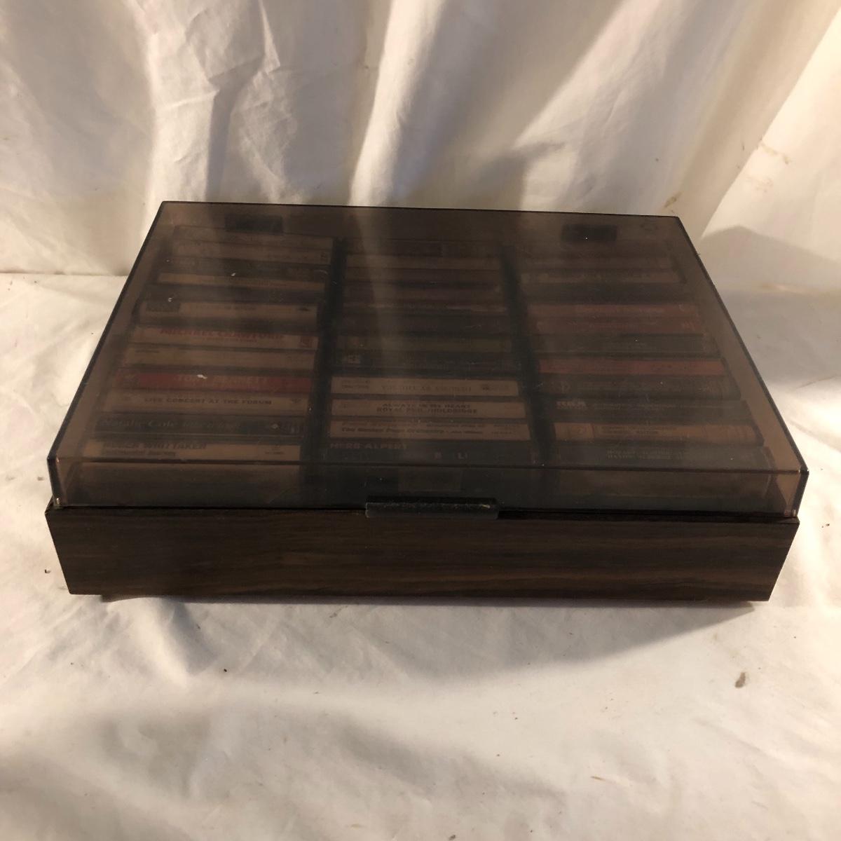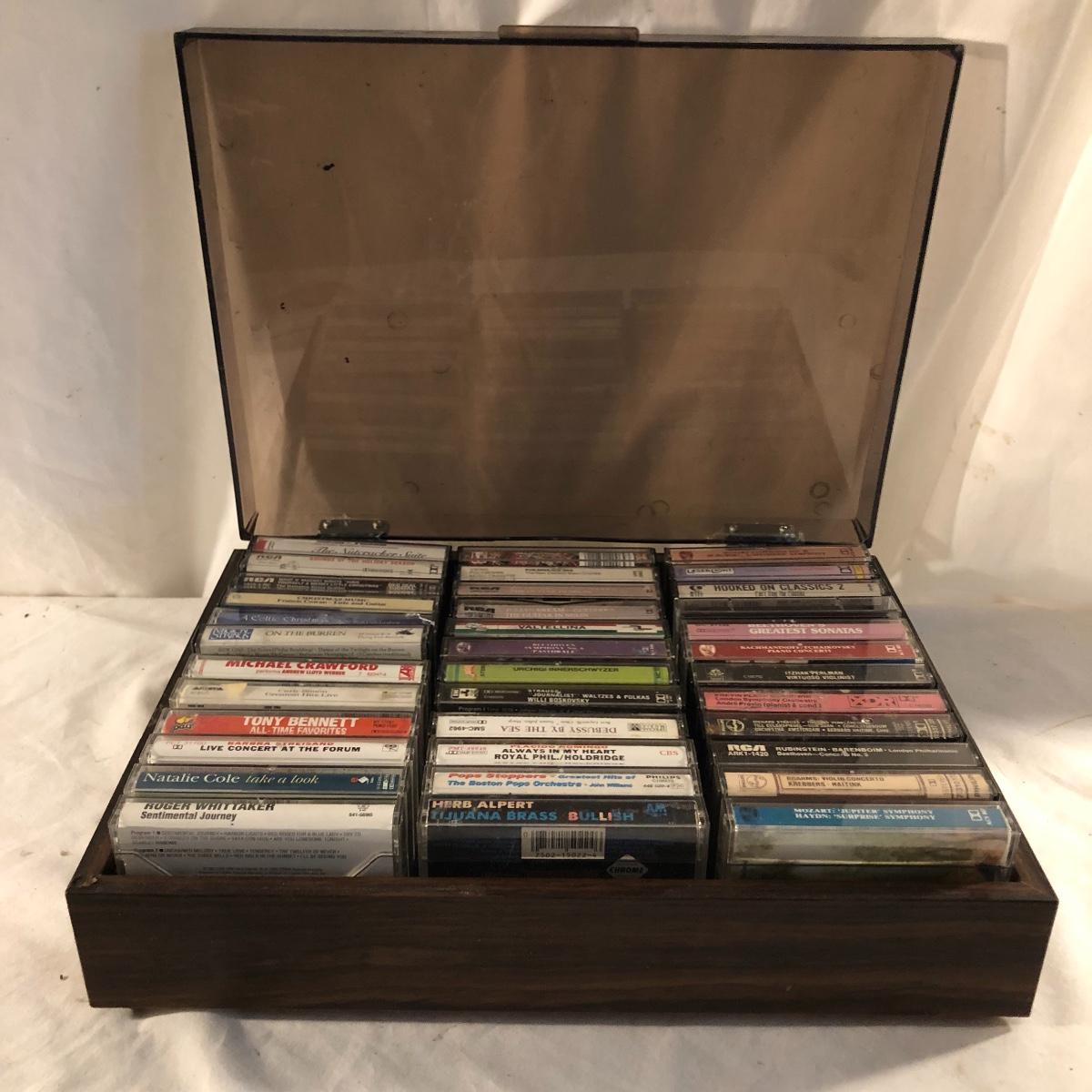 Go old school with this collection of cassette tapes. Lot includes I’ve sixty five cassette tapes in a variety of genres. Includes Perry Como, Simon & Garfunkel, Rosanne Cash, Placido Domingo, Kingston Trio, Bill Haley and the Comets and more. Largest storage box measures 10.5” x 14.5” x 4” and holds thirty six cassette tapes and is coming apart on corner, see pictures.