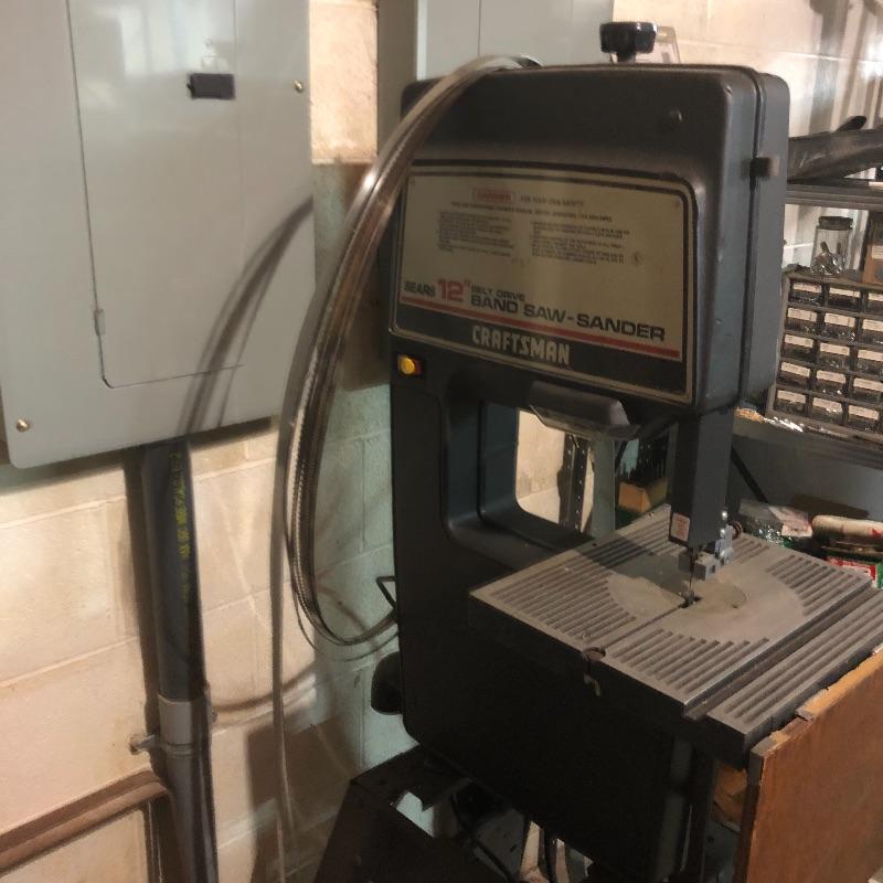 A great addition to your workshop is this Craftsman 12” belt drive bandsaw-sander with extra blades with two motors. Motors both worked when tested. Bandsaw measures 23” x 29.5” x 65”. Bring help item is substantial. Items in background not included.