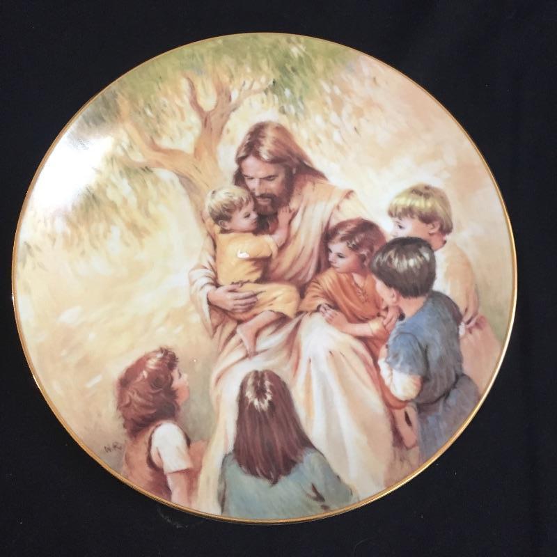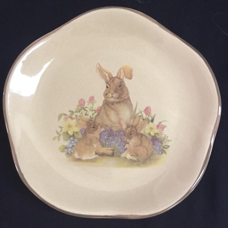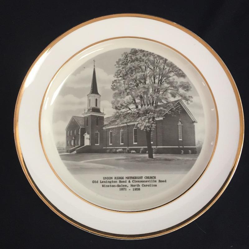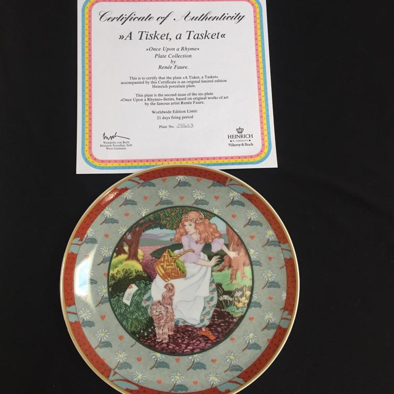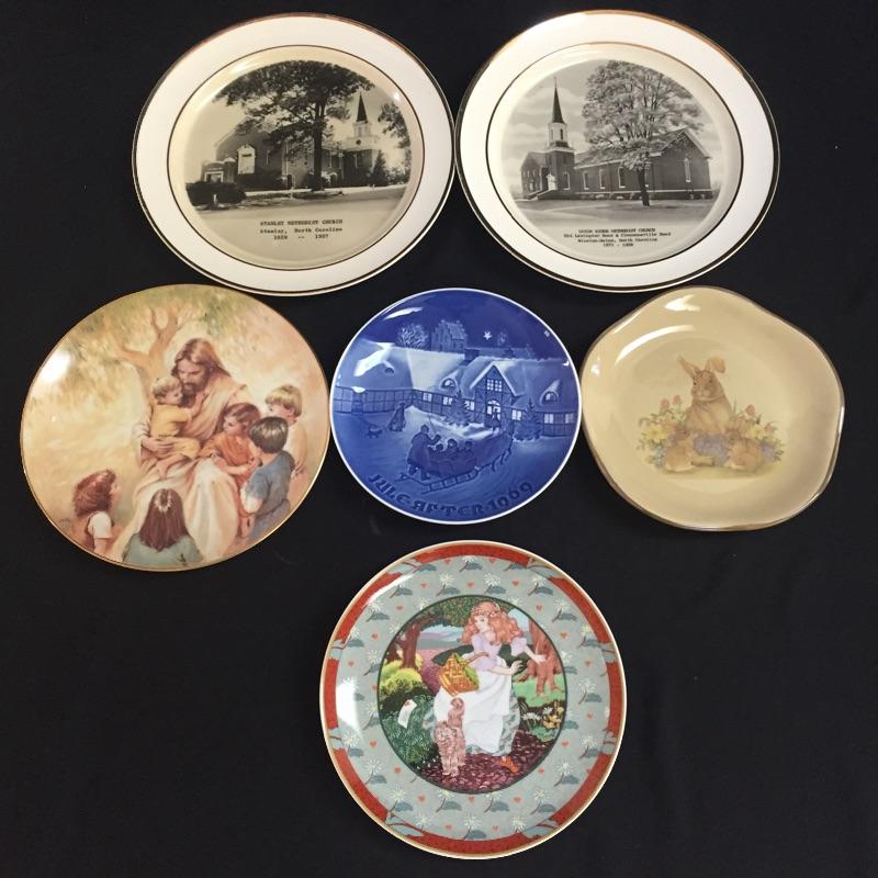 Collection of six plates including pair of NC churches , Two Christmas themed , Rabbit and numbered tisket a tasket plate. Largest plate measures 10”D.