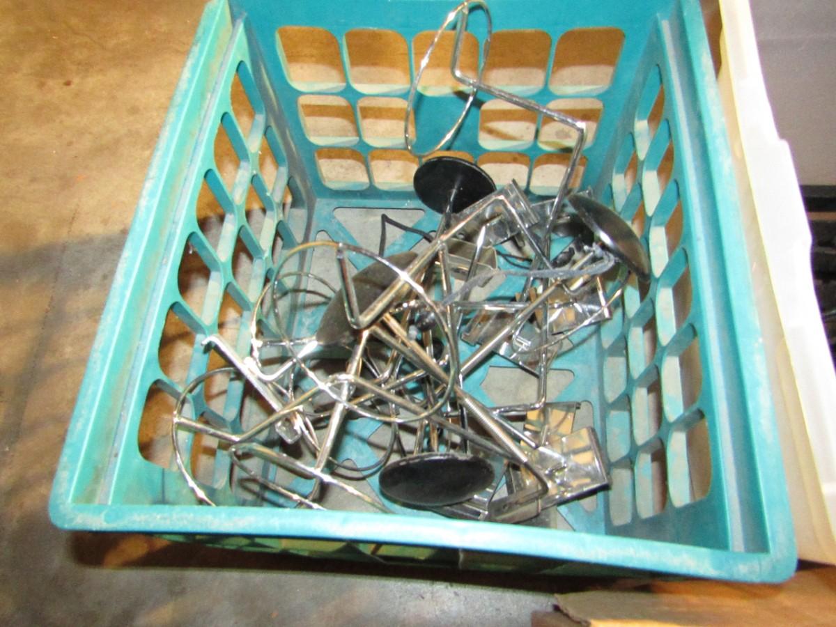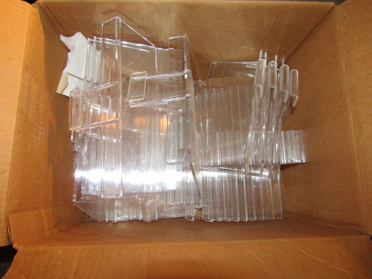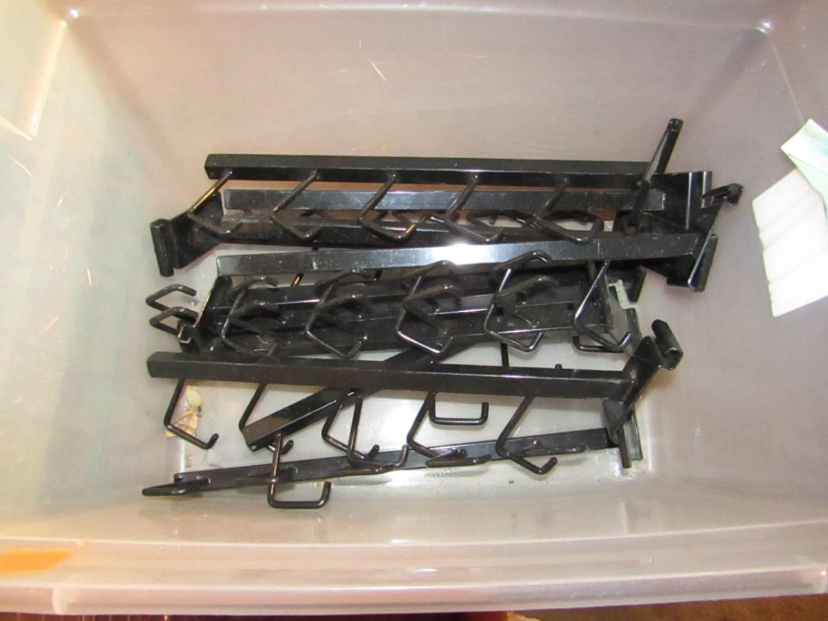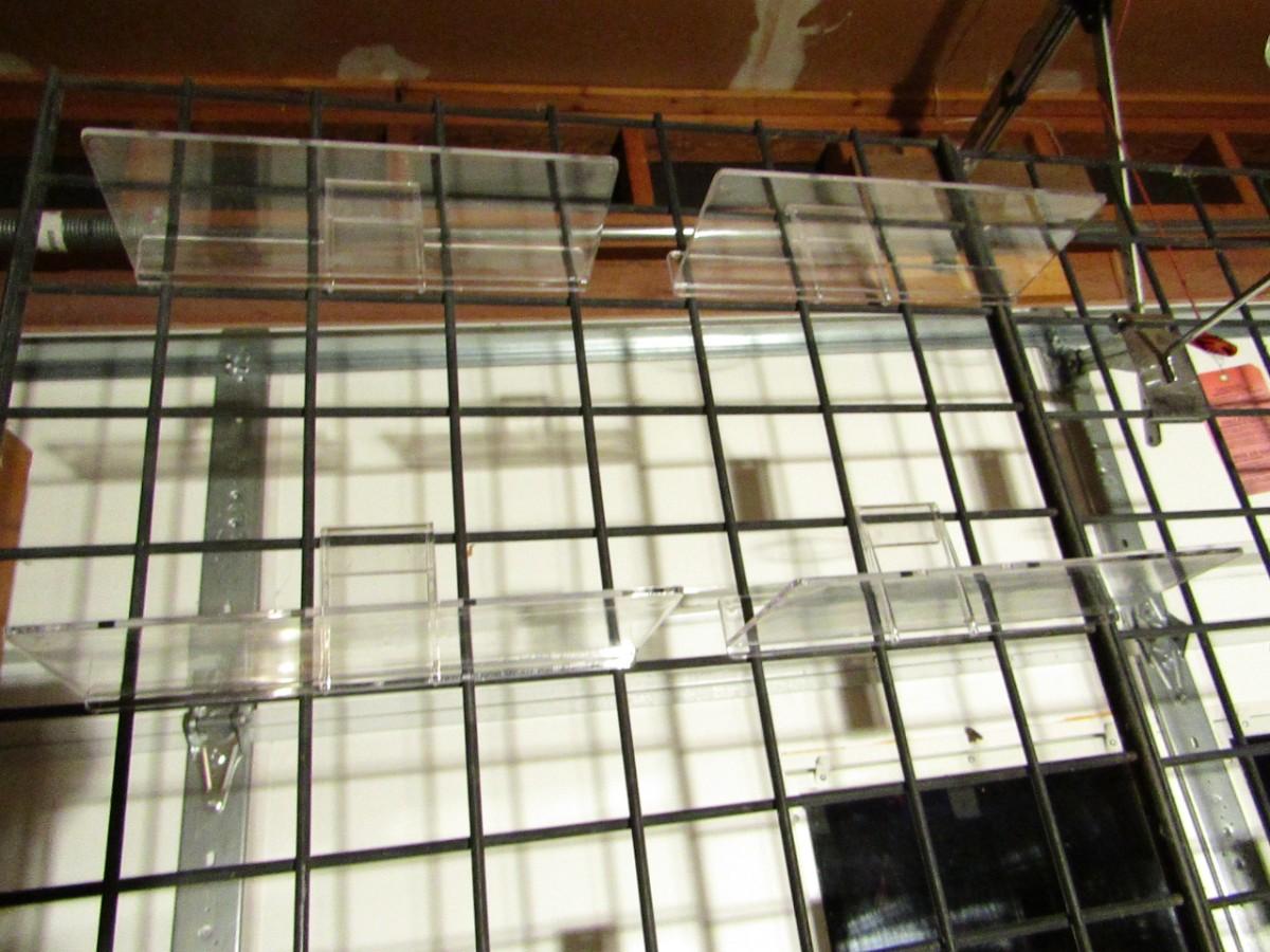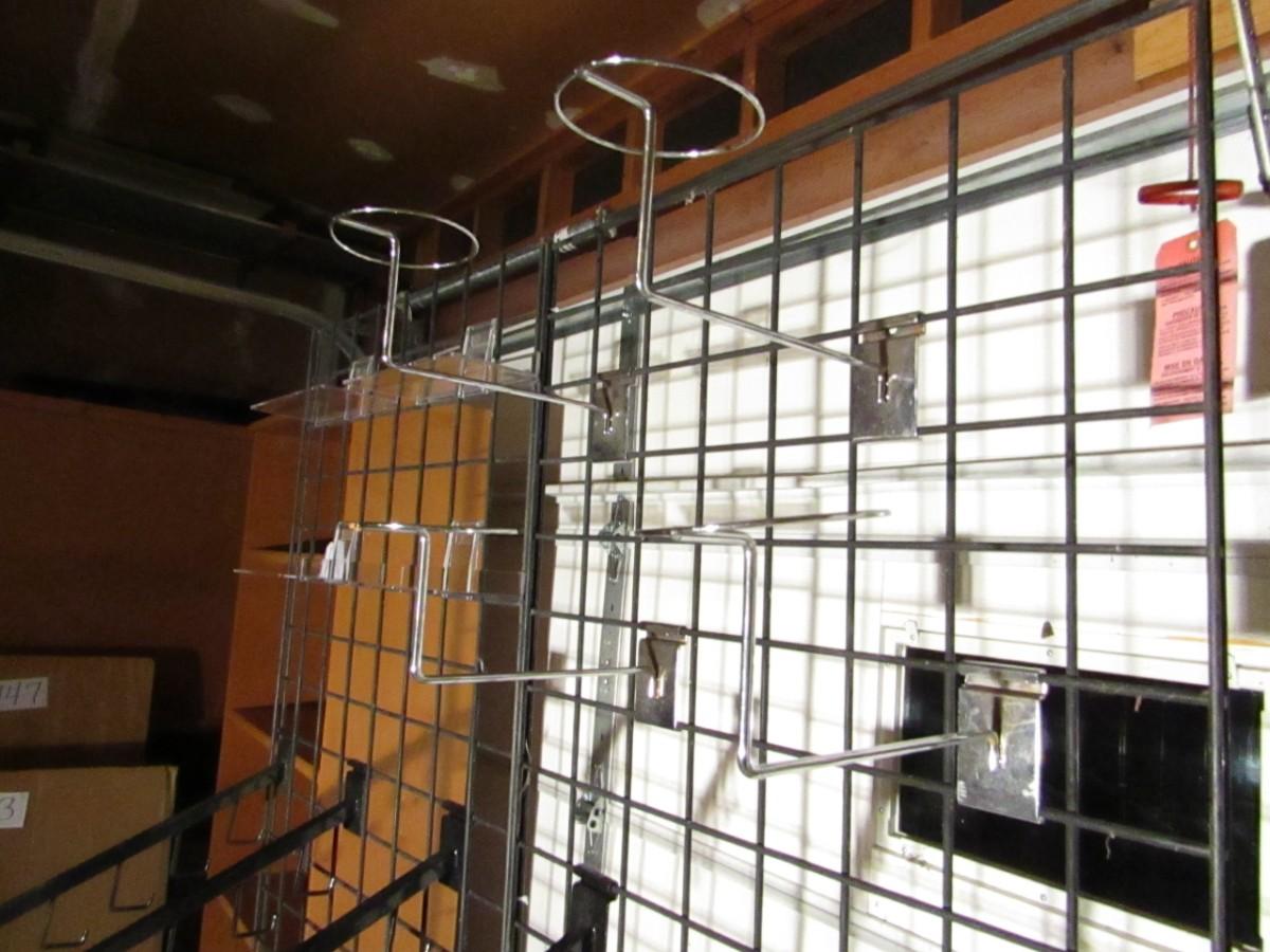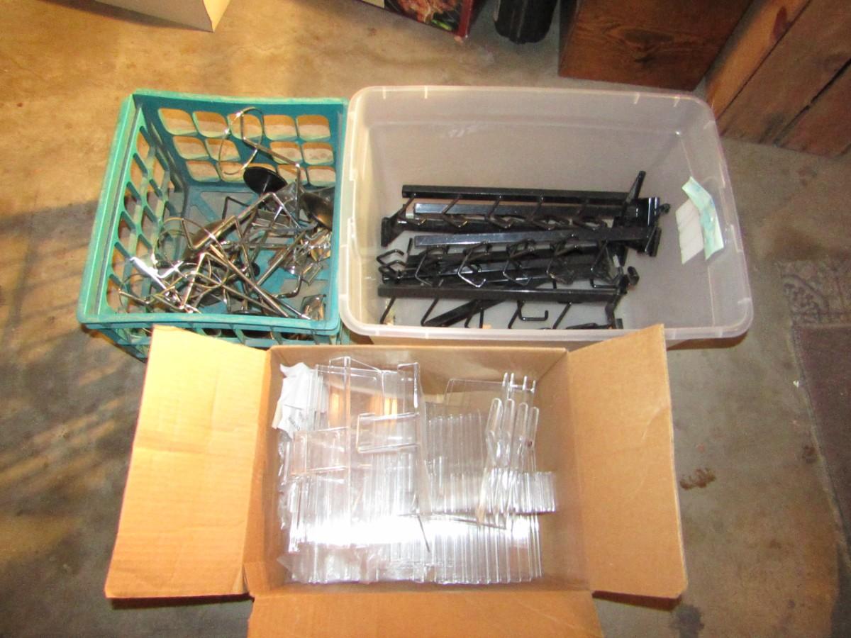 ALL METAL, DURABLE STANDS WITH CLEAR PLASTIC SHELVES, PERFECT FOR DISPLAYING A SHOE OR SIMILIAR ITEMS. BARS WITH 5 HOOKS GREAT FOR PURSES OR ANYTHING TO BE HUNG. METAL MESH BASKETS AND HAT HOLDERS
