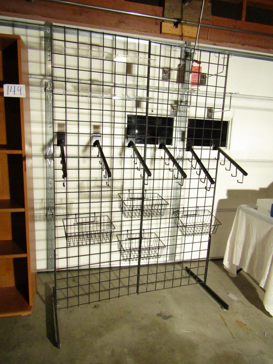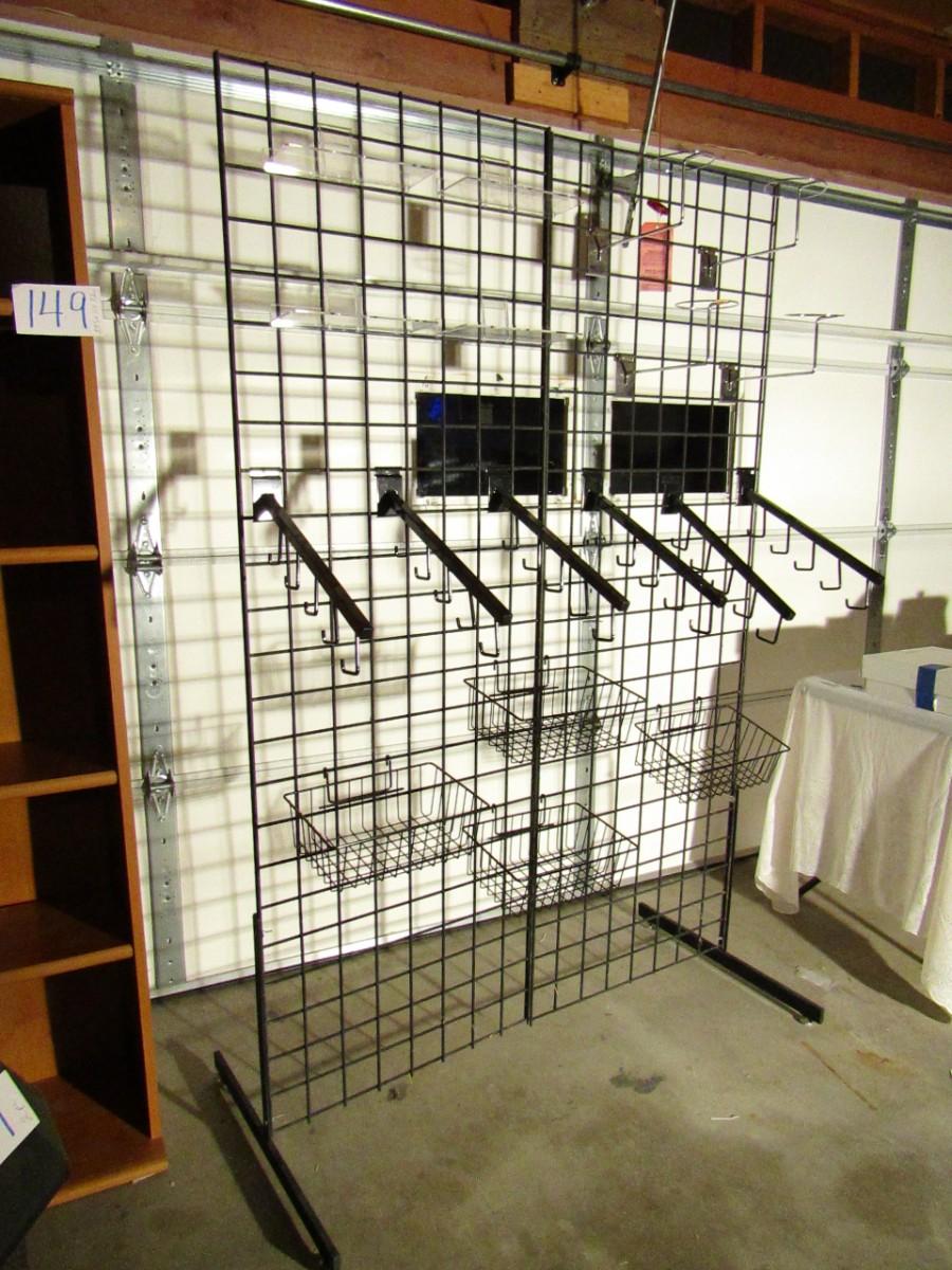 LOT 214 FREESTANDING DISLAY RACK WITH DIFFERENT ATTACHMENTS