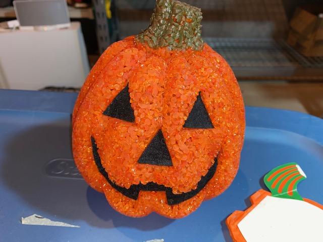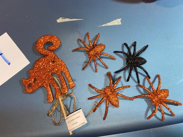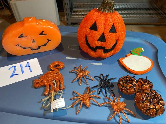 Pumpkin candle, 7" light up pumpkin, glitter spiders and glitter pumpkins