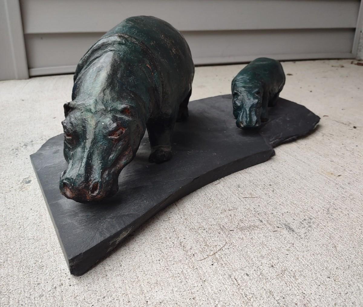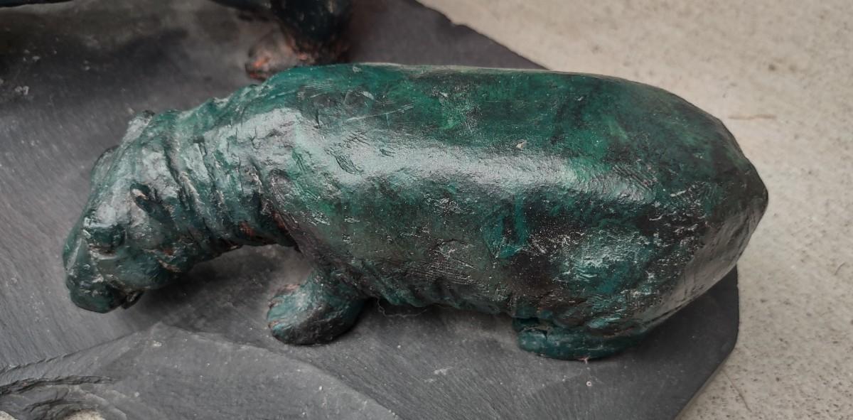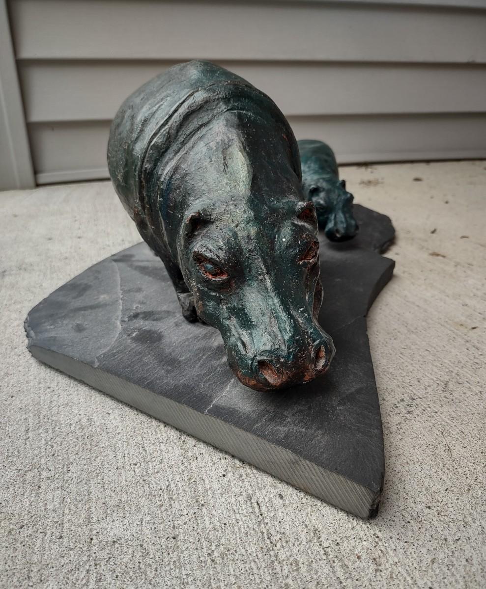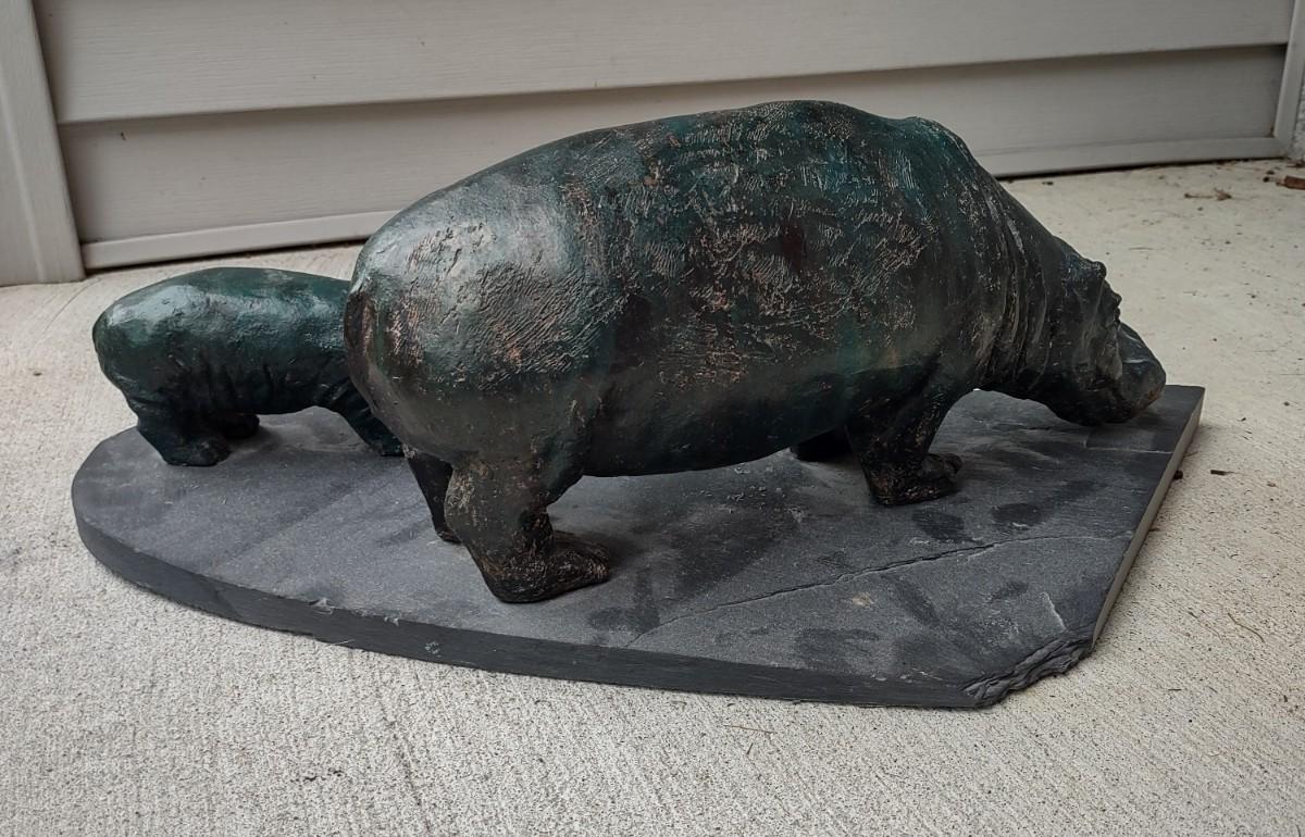 Lot 214: Hippo Sculpture Art On Slate (Large in Size)