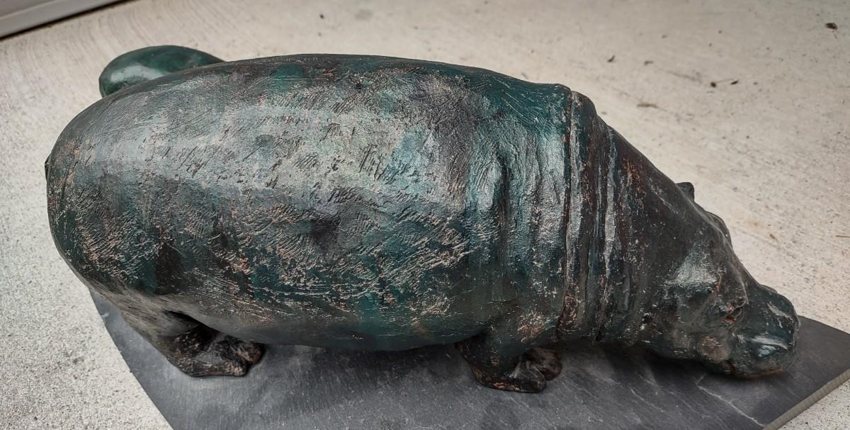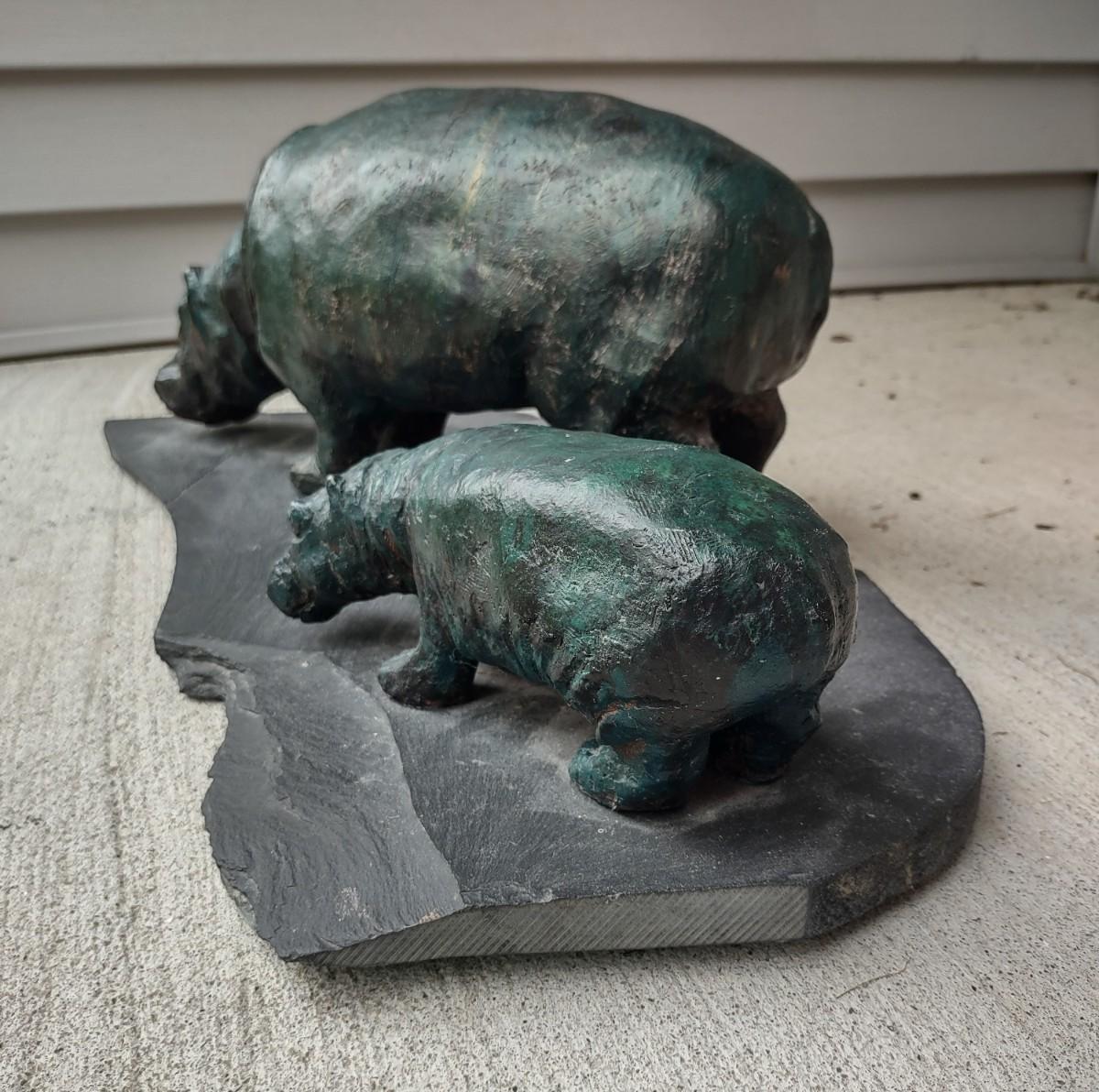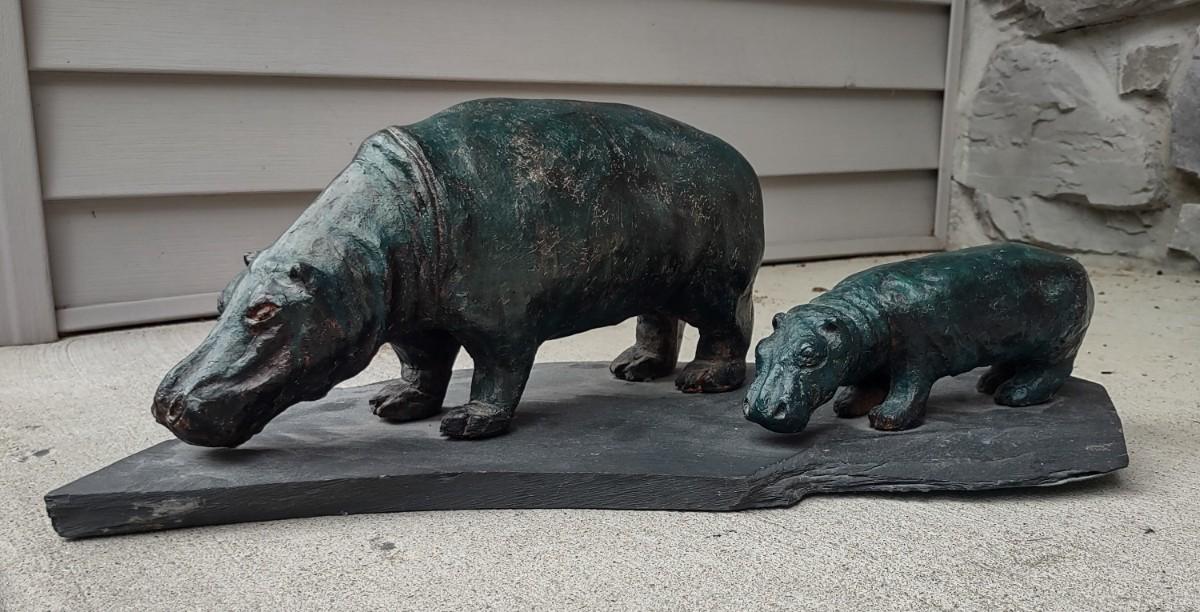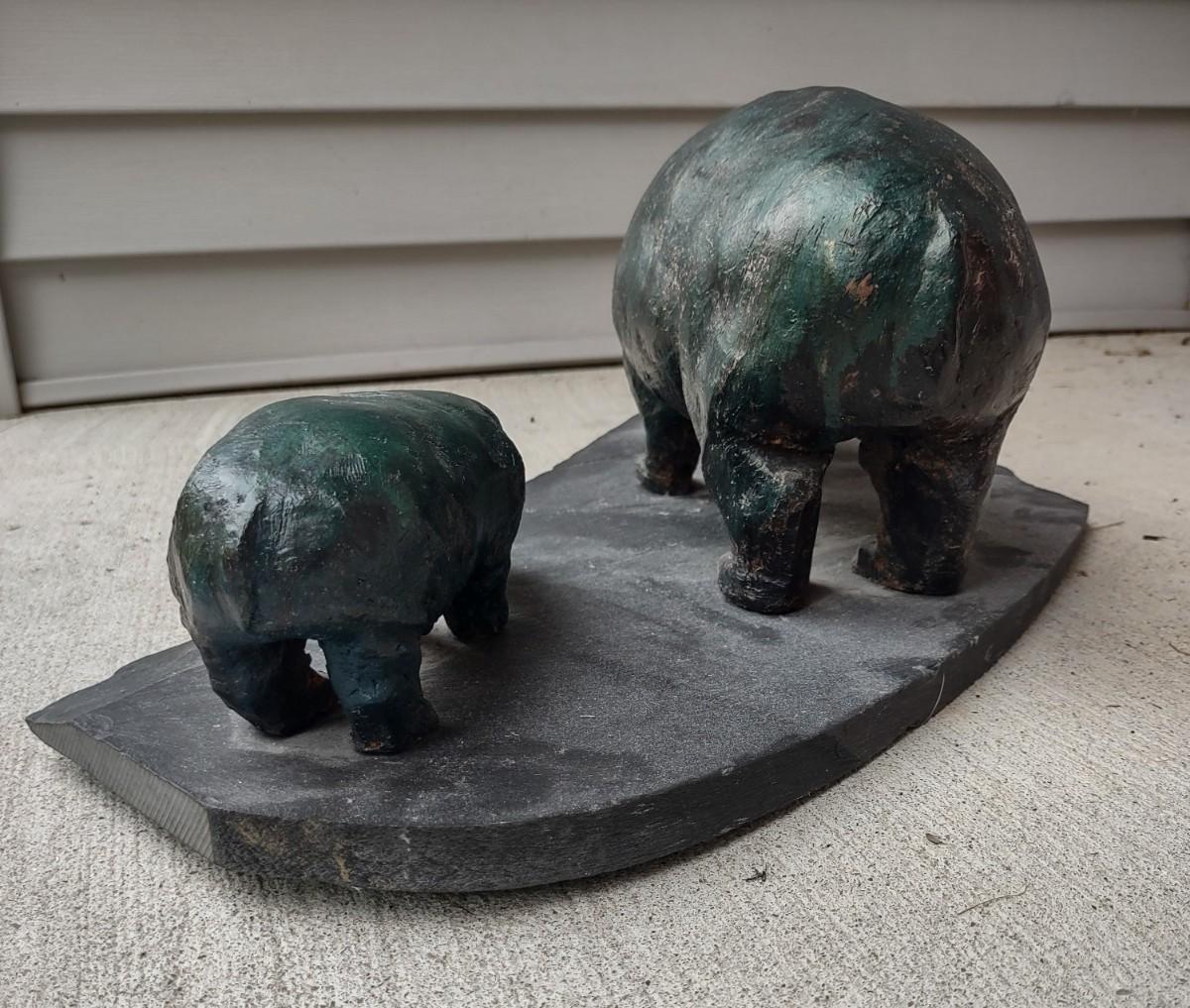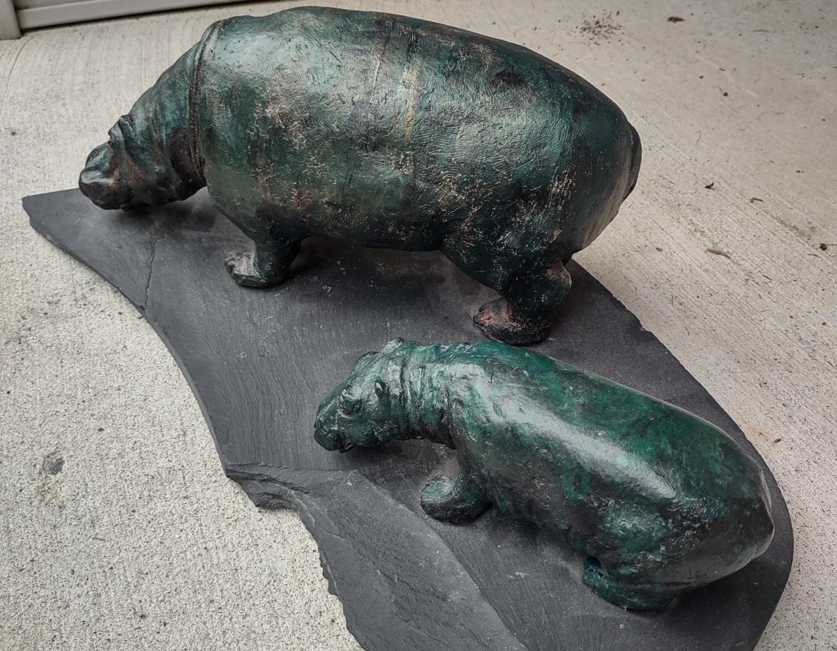 Lot 214: Hippo Sculpture Art On Slate (Large in Size)