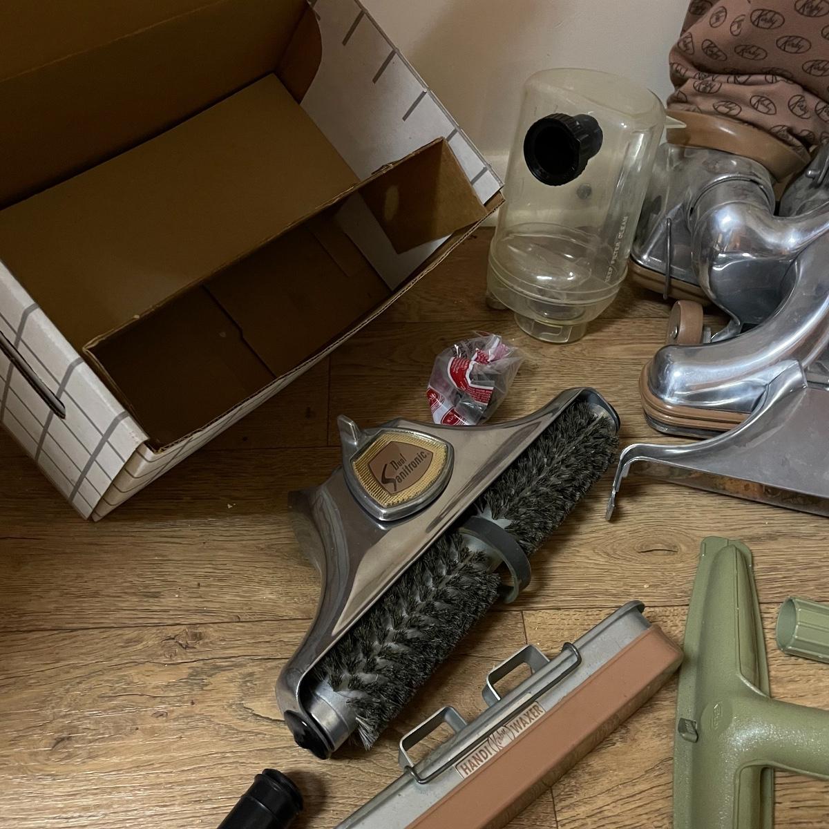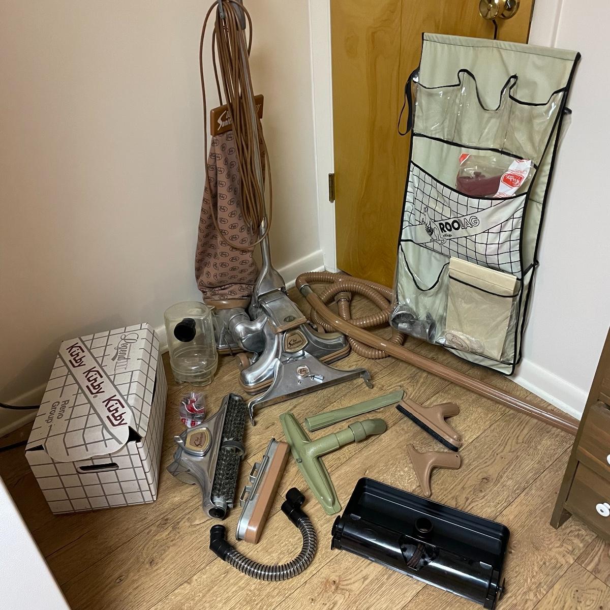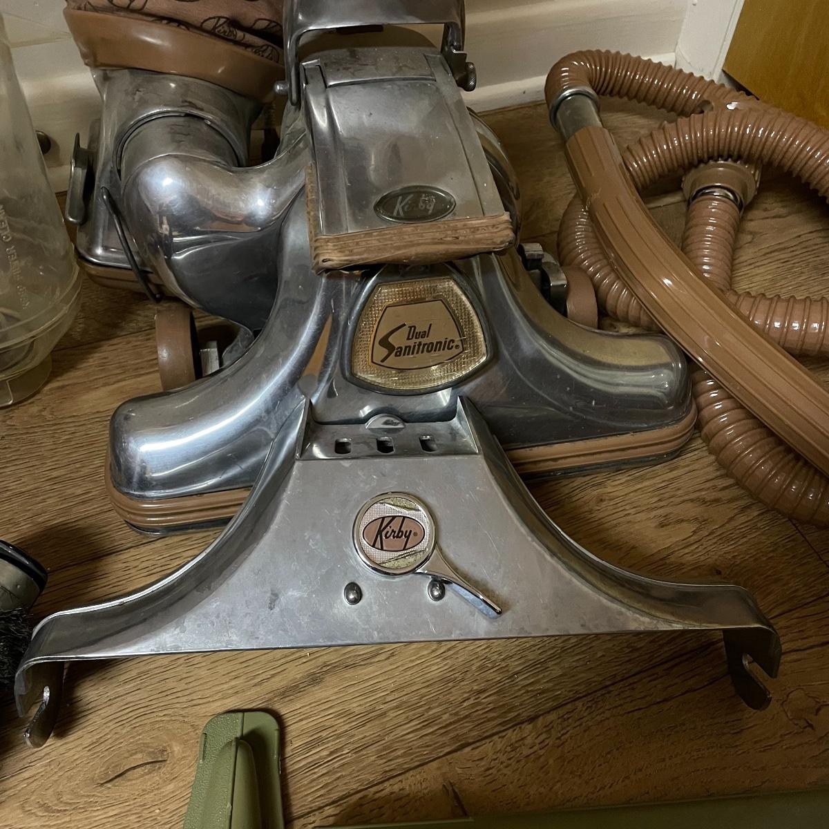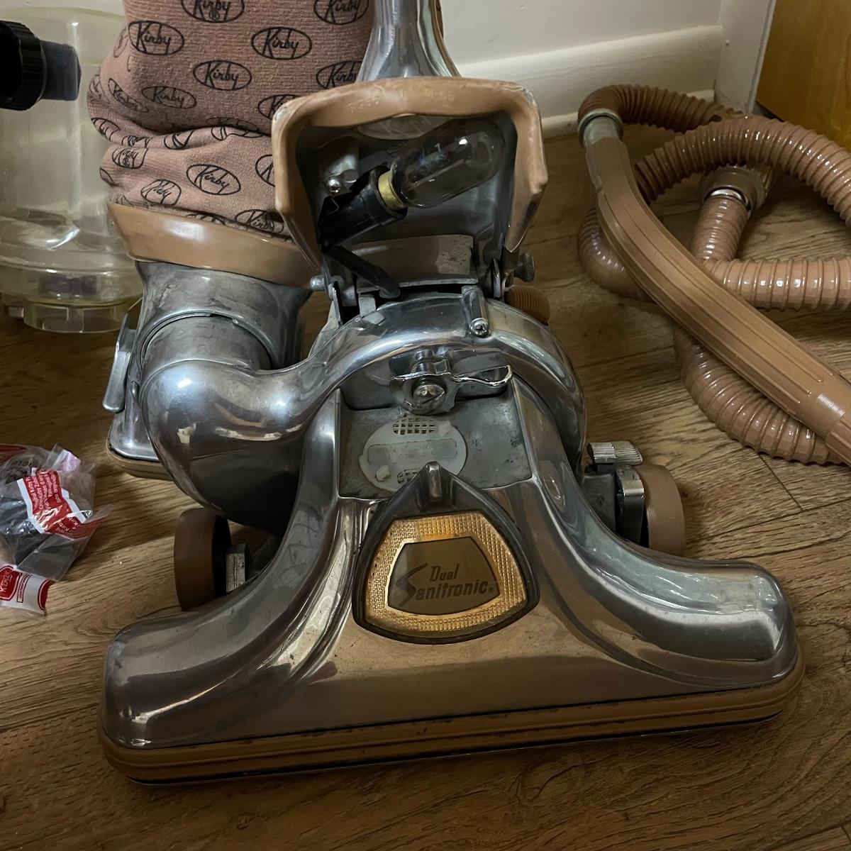 Awesome vintage Kirby Dual Sanitronic vacuum model D50 with a Factory Rebuild tag. Along with looking great, this vacuum turned on when tested and sounded good. Collection also includes various nozzles, hoses and other accessories that you can keep neatly organized in a clear plastic bag hanging in a closet or on a door. Kirby has an excellent reputation, and this is a find you shouldn’t pass up. See images. Accessories were not tested. Local pick up only.