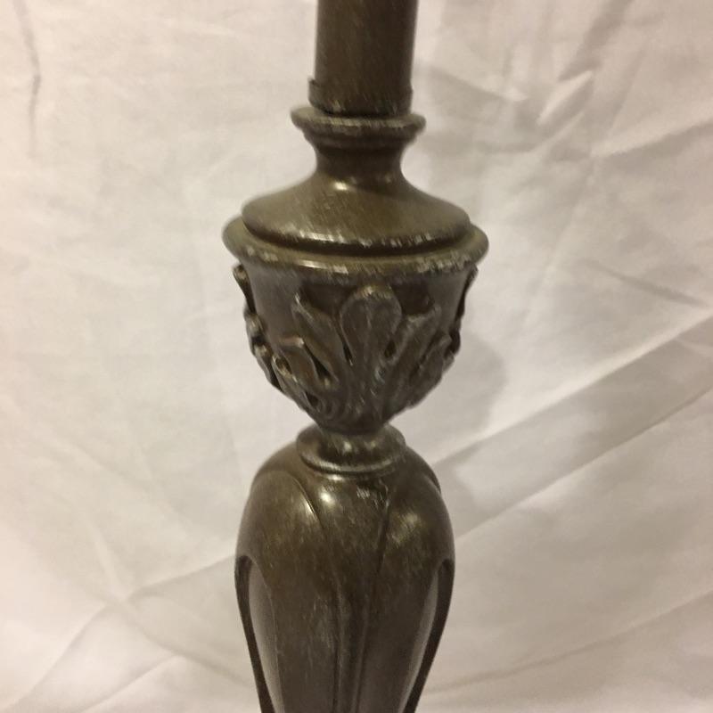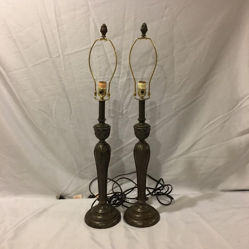 A nice pair of brown metal table lamps to light up your home. Just add shades and these lamps are ready to go. Both lamps worked when tested. Lamps measure 6.5”D x 32.5” tall.