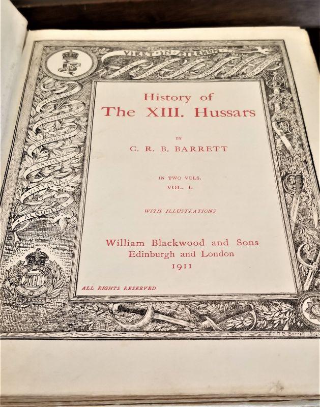 Scarce Regimental History - "History of the XIII Hussars in 2 volumes" - published 1911 by Blackwood: London. Author is C.R.B Barrett. 393 pages in Vol 1, 442 pages (includes index) in Volume II. Illustrated. Good condition.