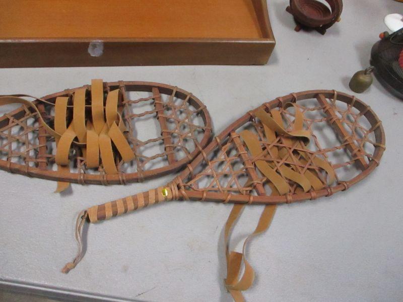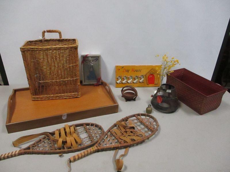 Lot 214 - Snow Shoes - Teak Wood Serving Tray - Basket - Decor