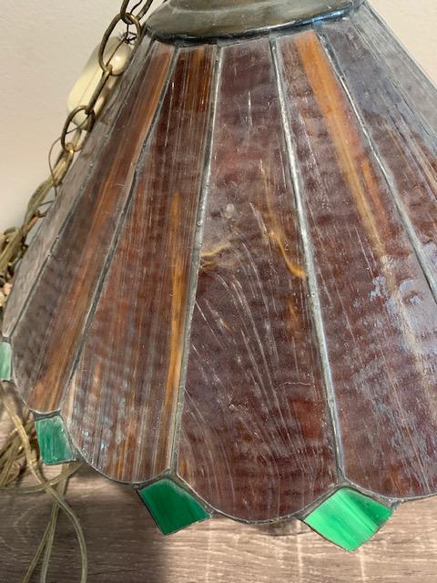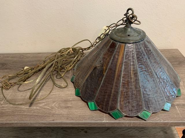 LOT 213 Swag Lamp with Leaded Glass Shade