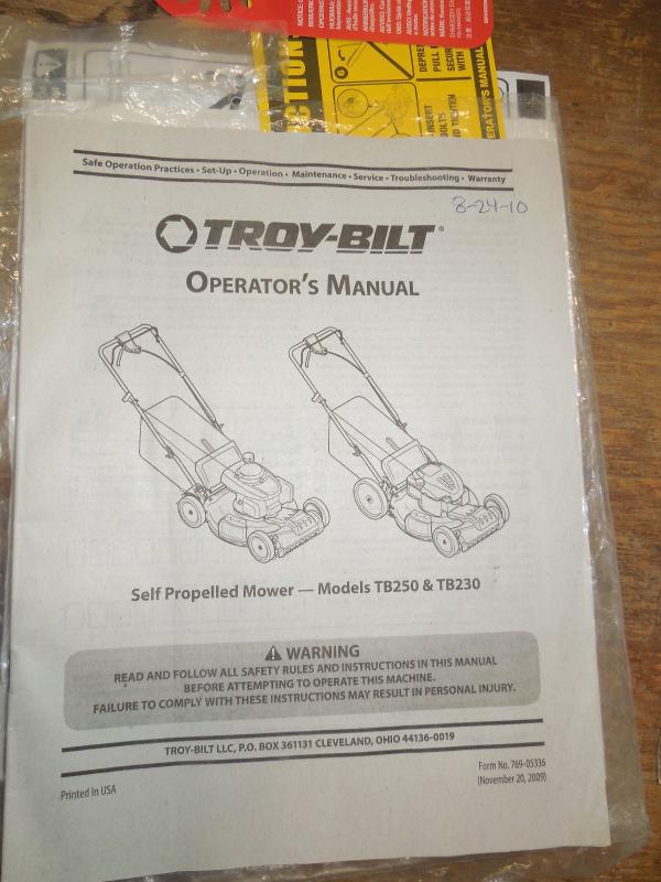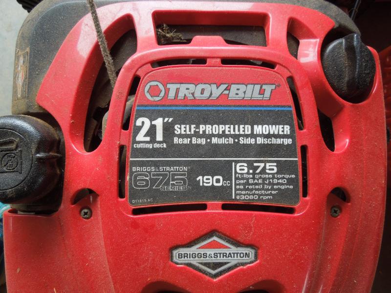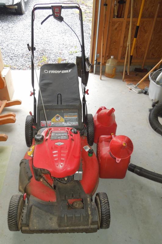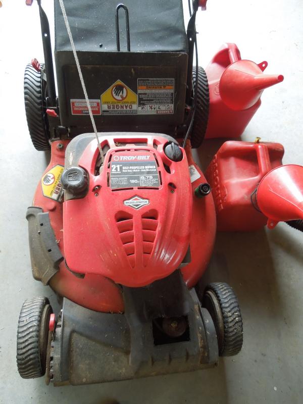 Lot 214: Troy-Bilt 21" Self Propelled Mulching Lawn Mower and 2 Gas Jugs