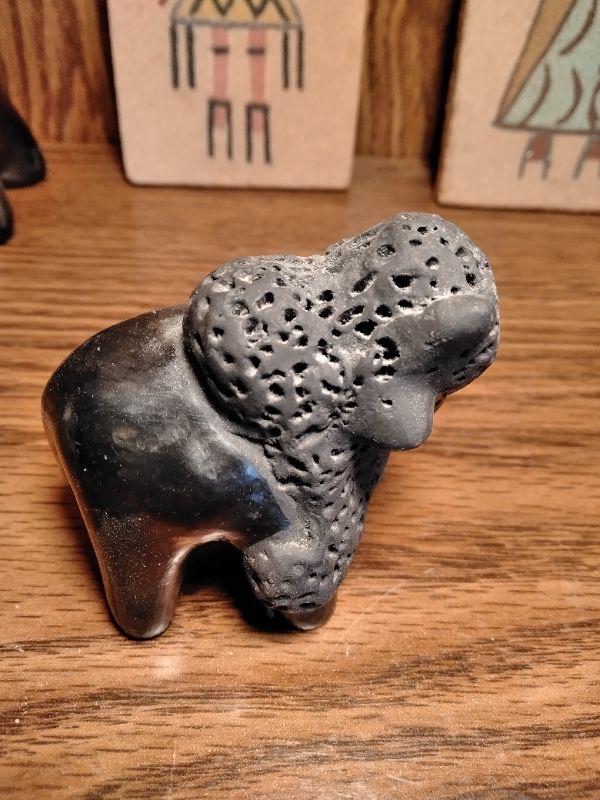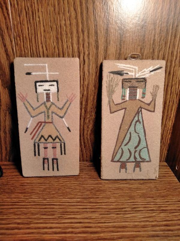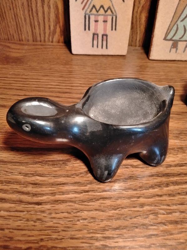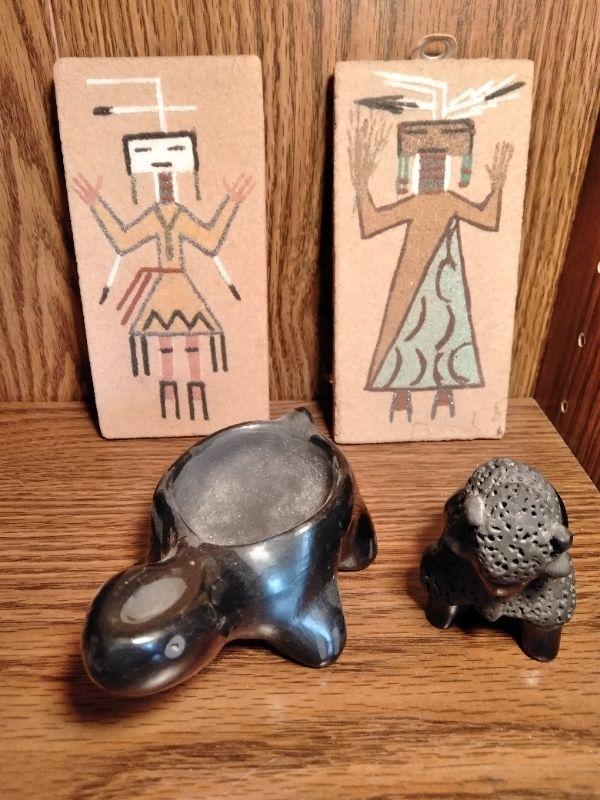 TWO NATIVE AMERICAN SAND ARTS, A HAND-CARVED TURTLE, AND A BUFFALO?