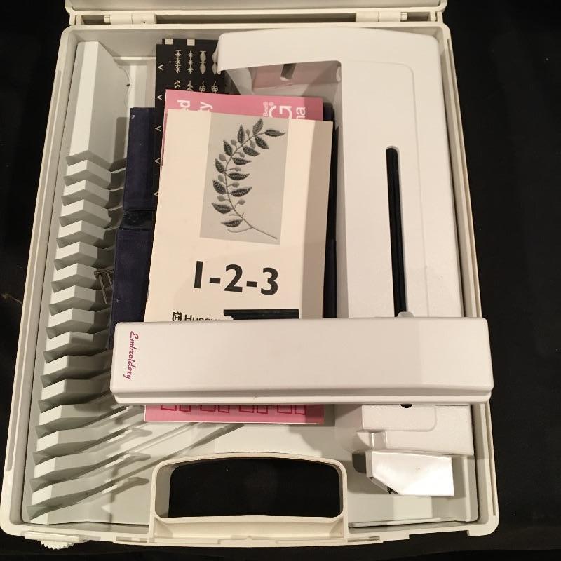Viking Husqvarna 300 sewing machine with embroidery attachment. Machine worked when tested, embroidery attachment was not tested.