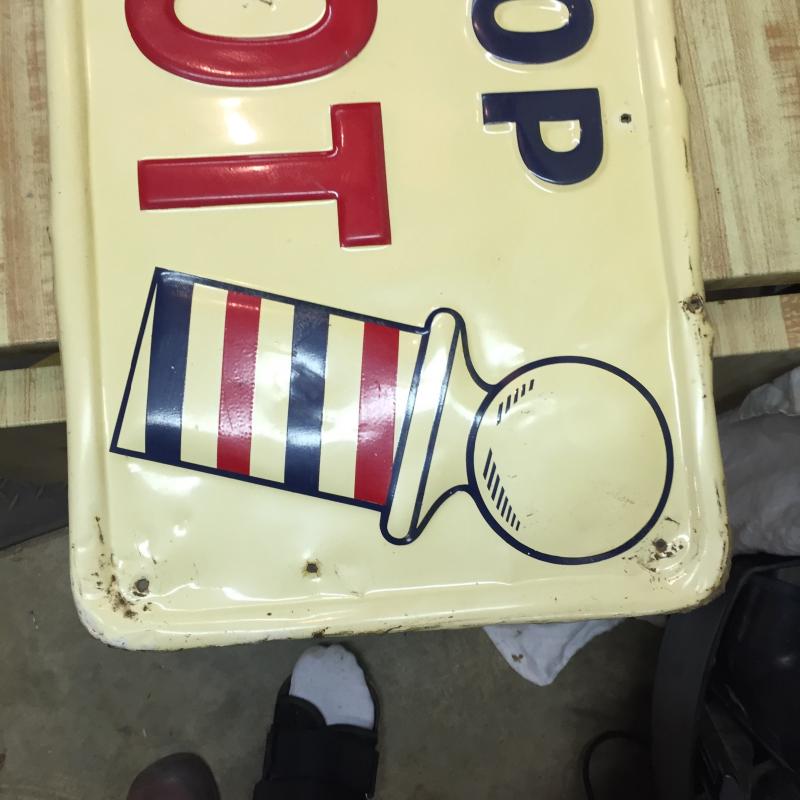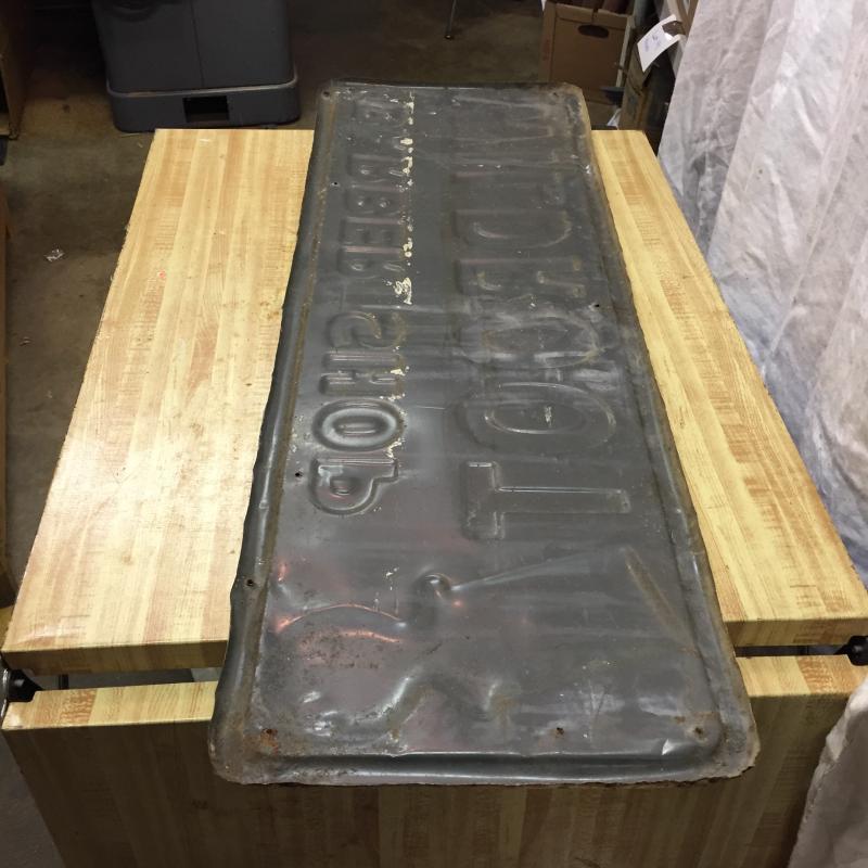 Vintage metal Barber Shop Sign Measures 39” x 13”.