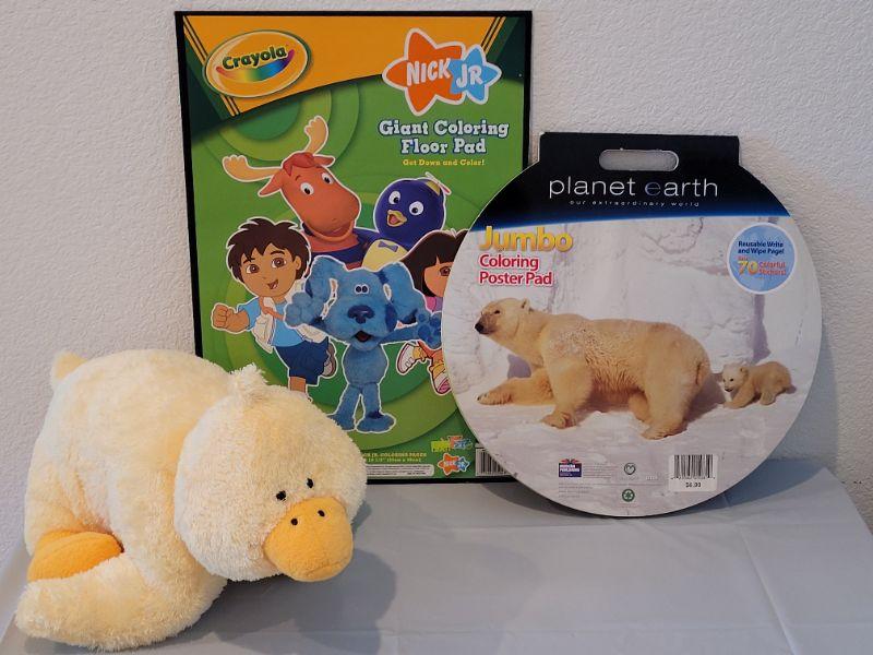 Lot 215: New Extra Large Coloring Books and Macy's Duck Plush