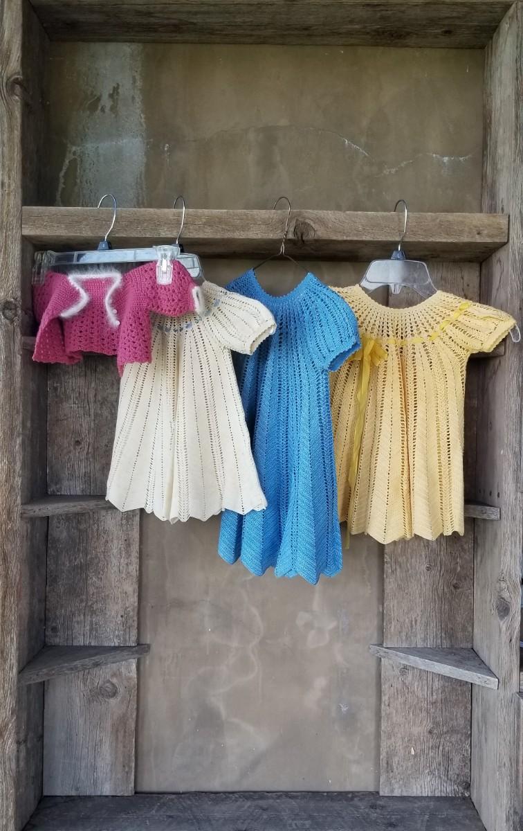 Lot 215: Vintage Handmade Baby/Toddler Dresses & 1 Doll Sweater