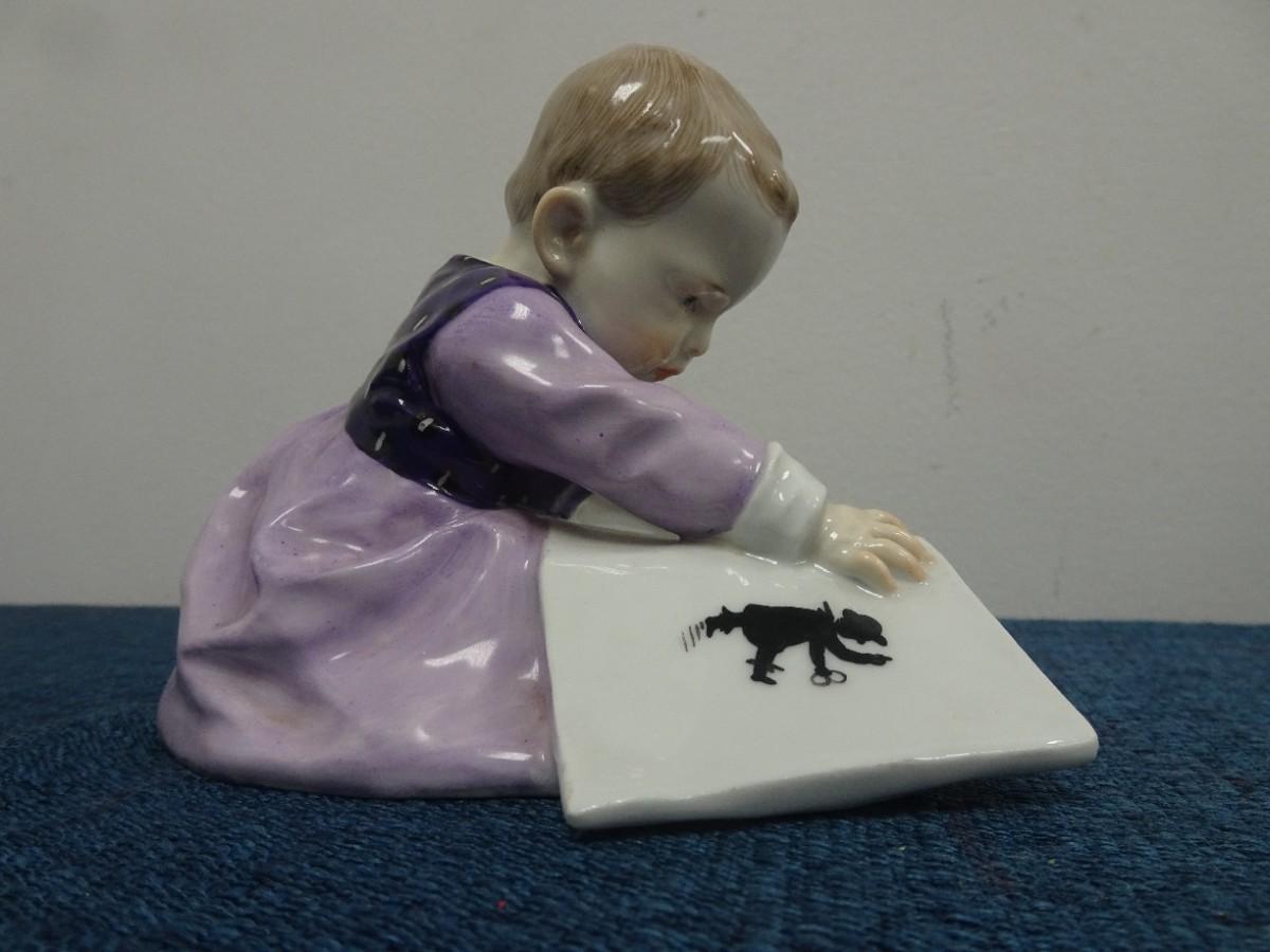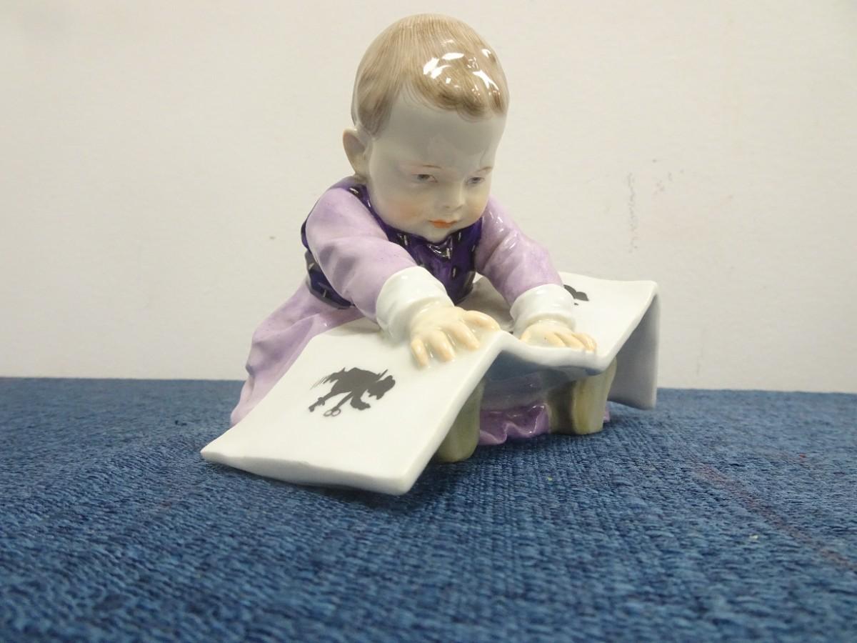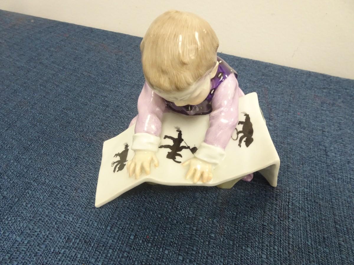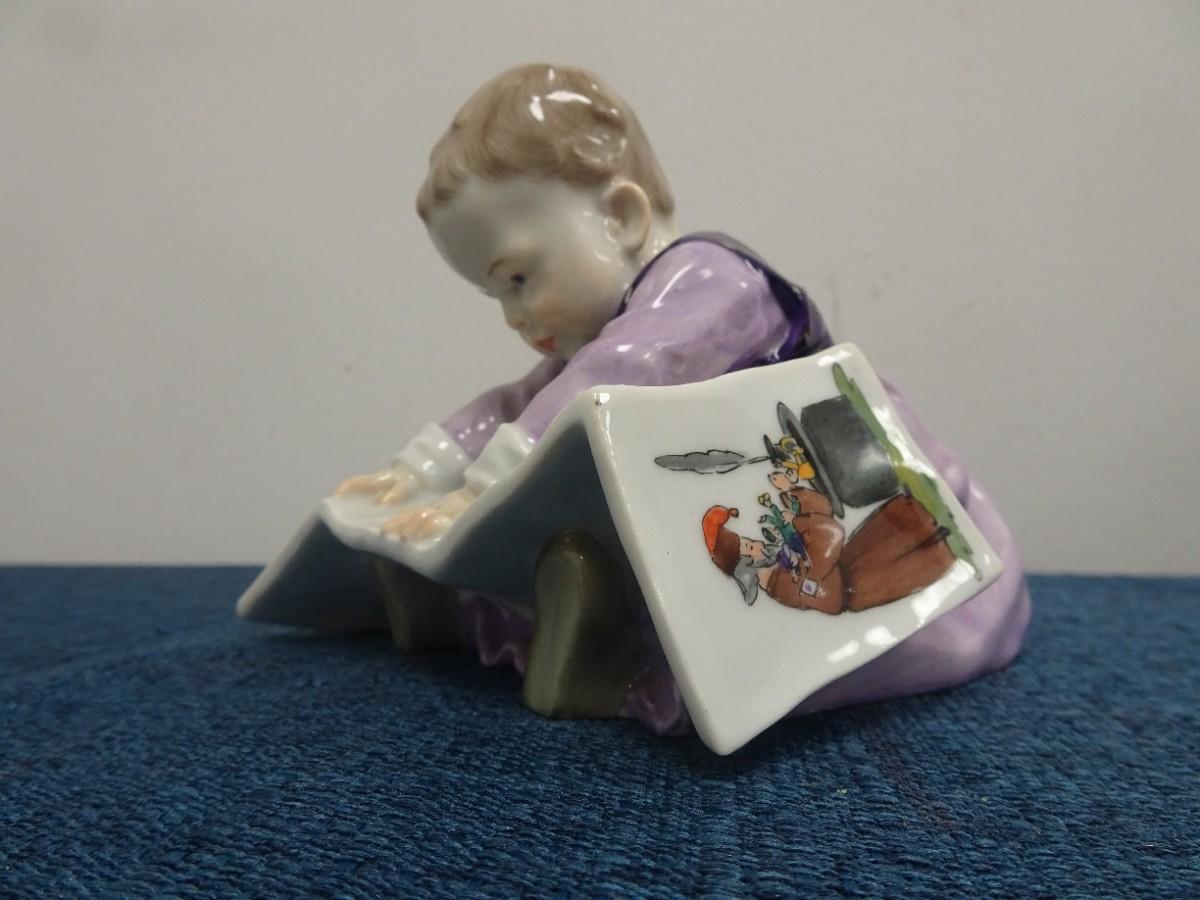 LOT 215 MEISSEN FIGURINE CHILD LOOKING AT PICTURE BOOK