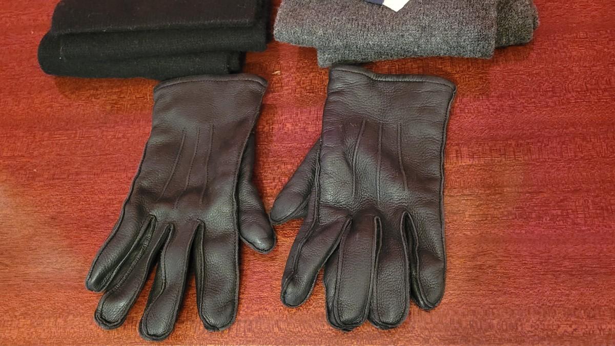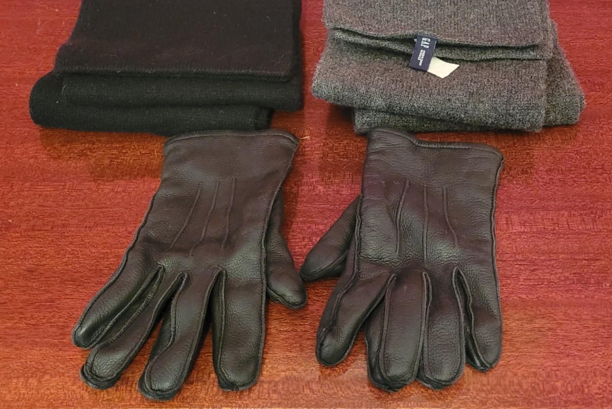 Lot 215: (2) GAP Scarves and One Pair of Gates Men's Leather Gloves