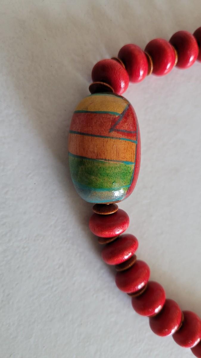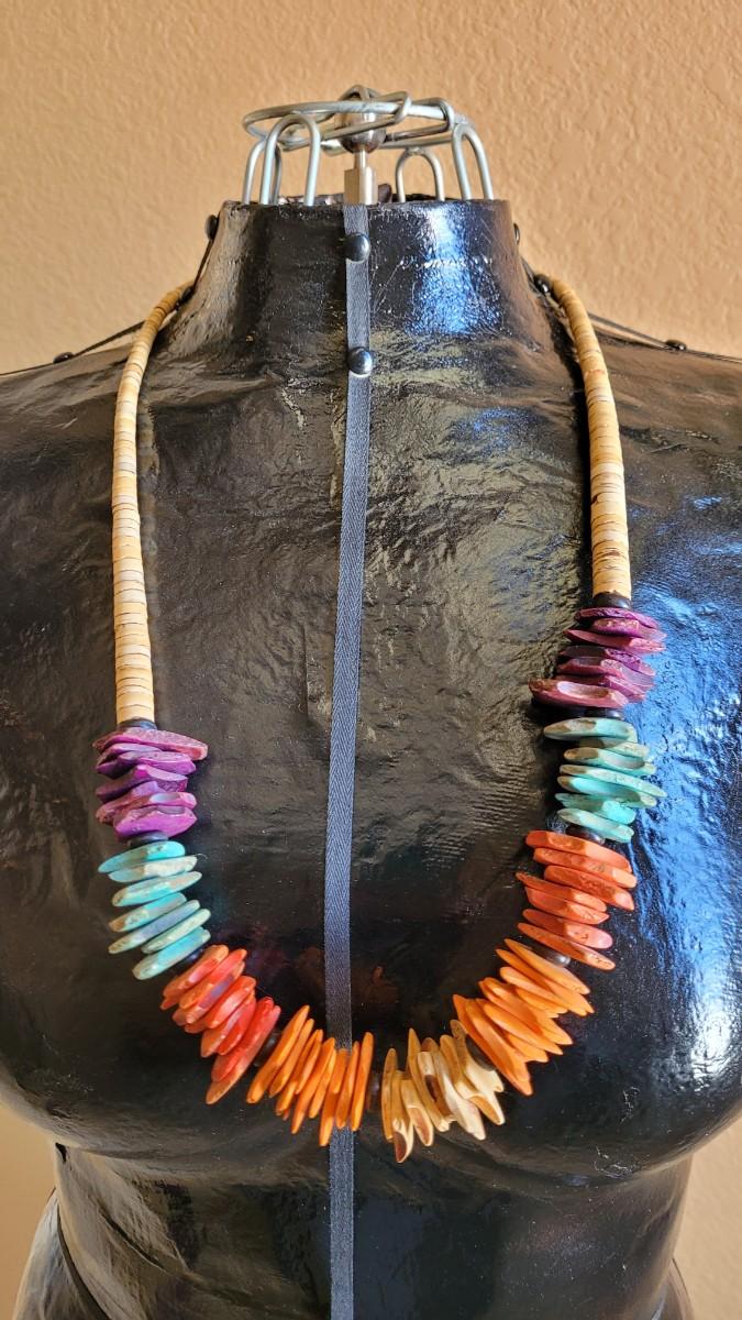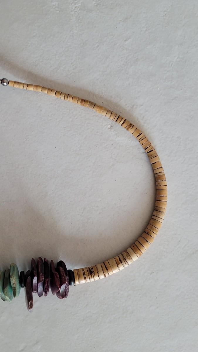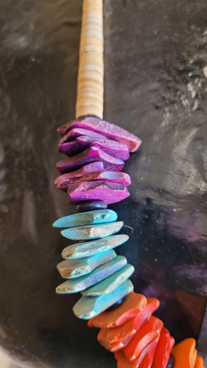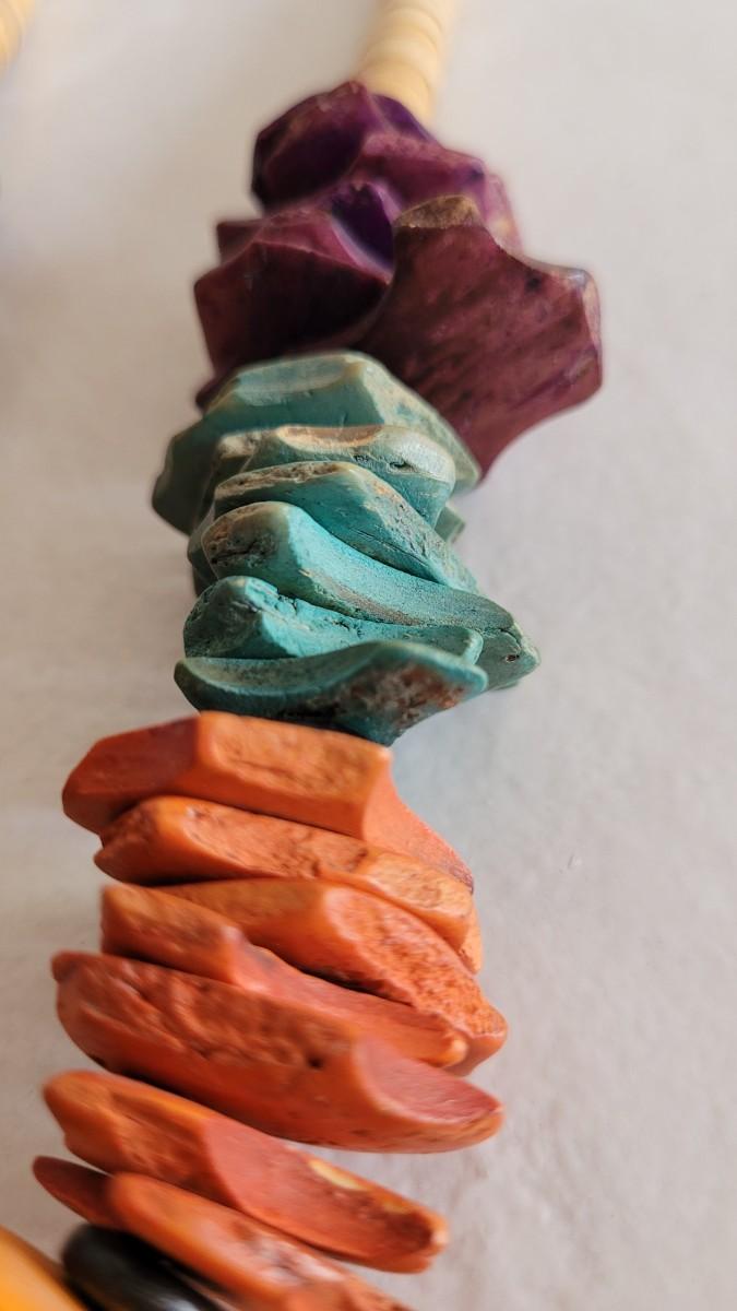 Not sure what the multicolored material is that graces the long heishi.